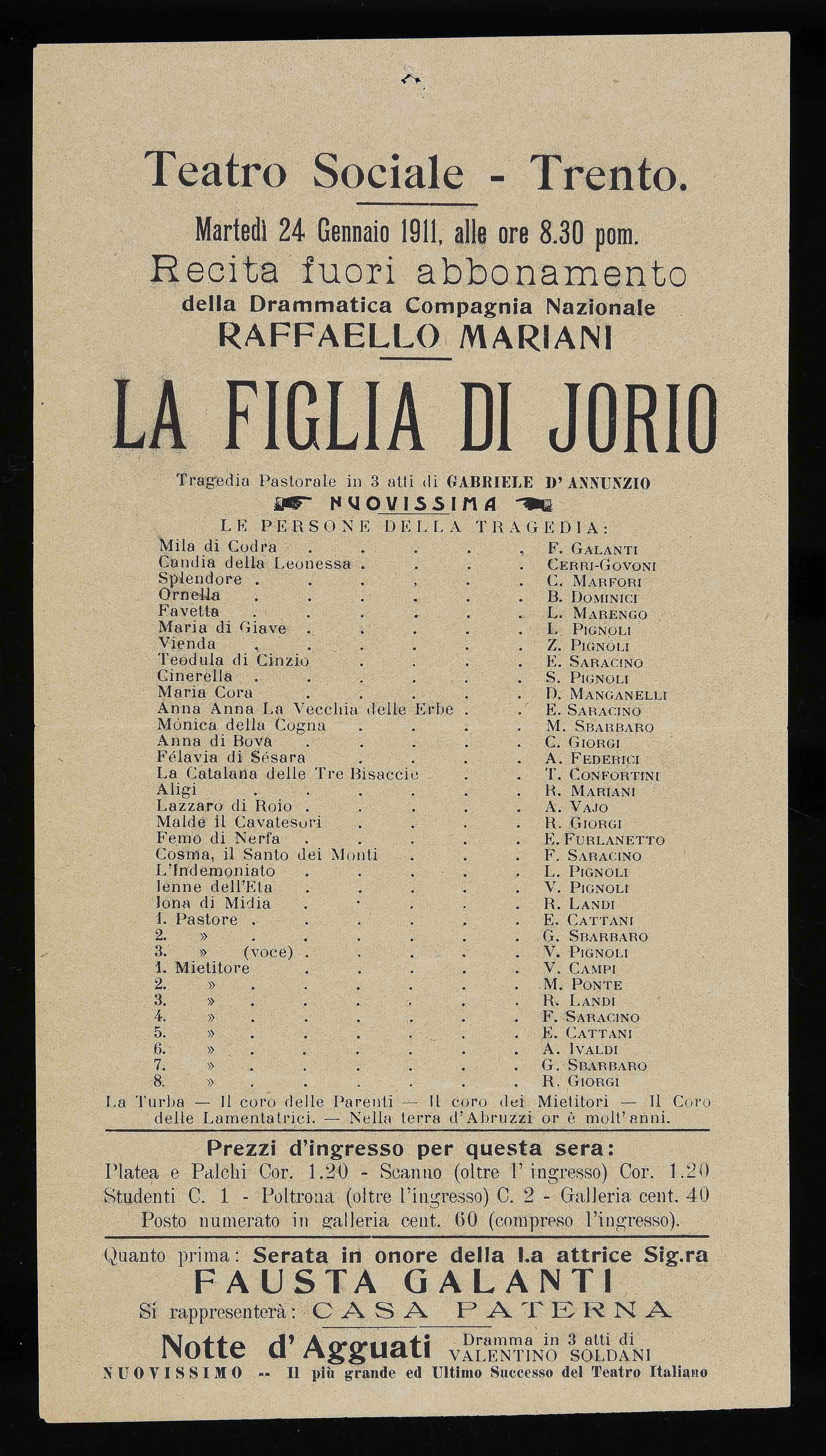 Teatro Sociale – Trento. Martedì 24 gennaio 1911, alle ore 8.30 pom.