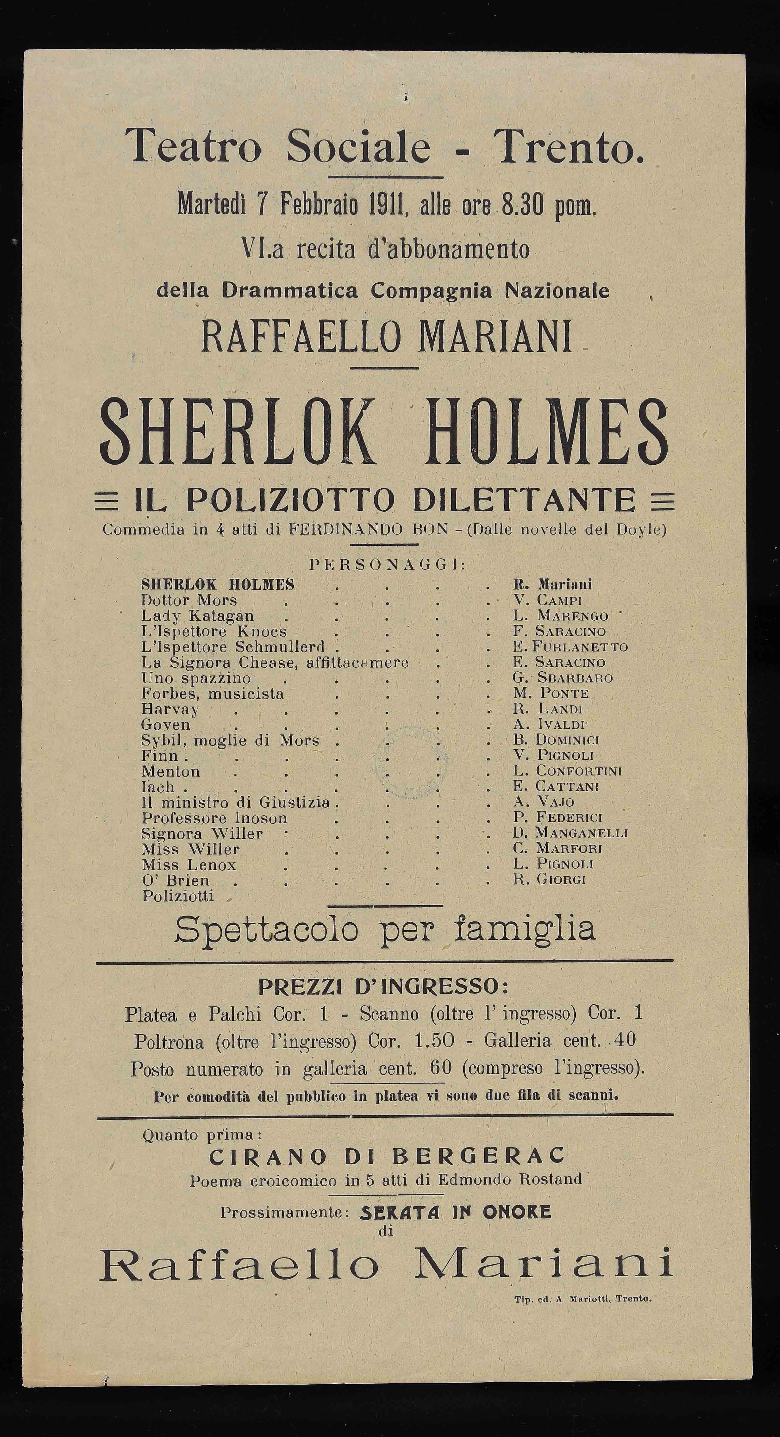 Teatro Sociale – Trento. Martedì 7 febbraio 1911, alle ore 8.30 pom.
