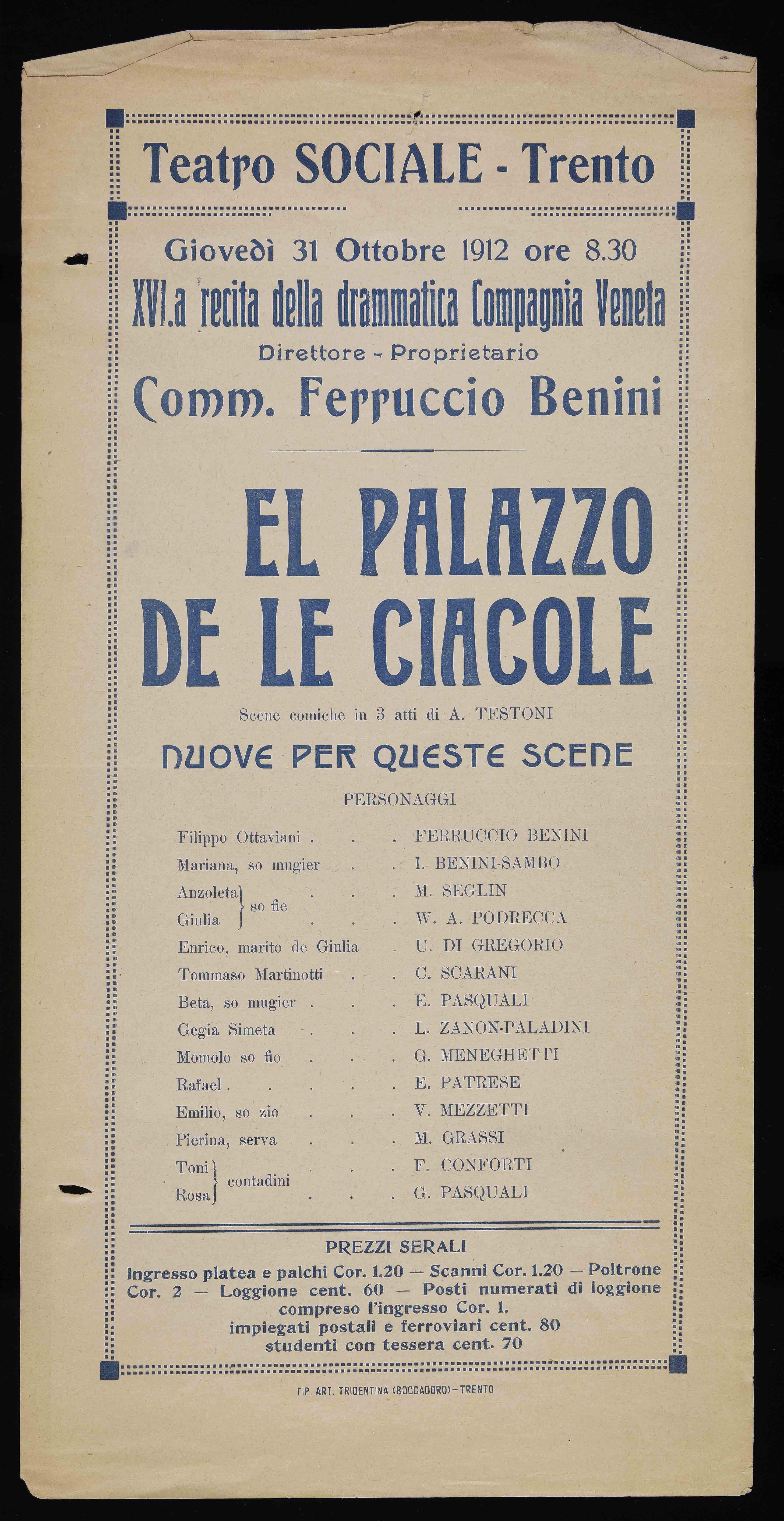 Teatro Sociale – Trento. Giovedì 31 ottobre 1912 ore 8.30