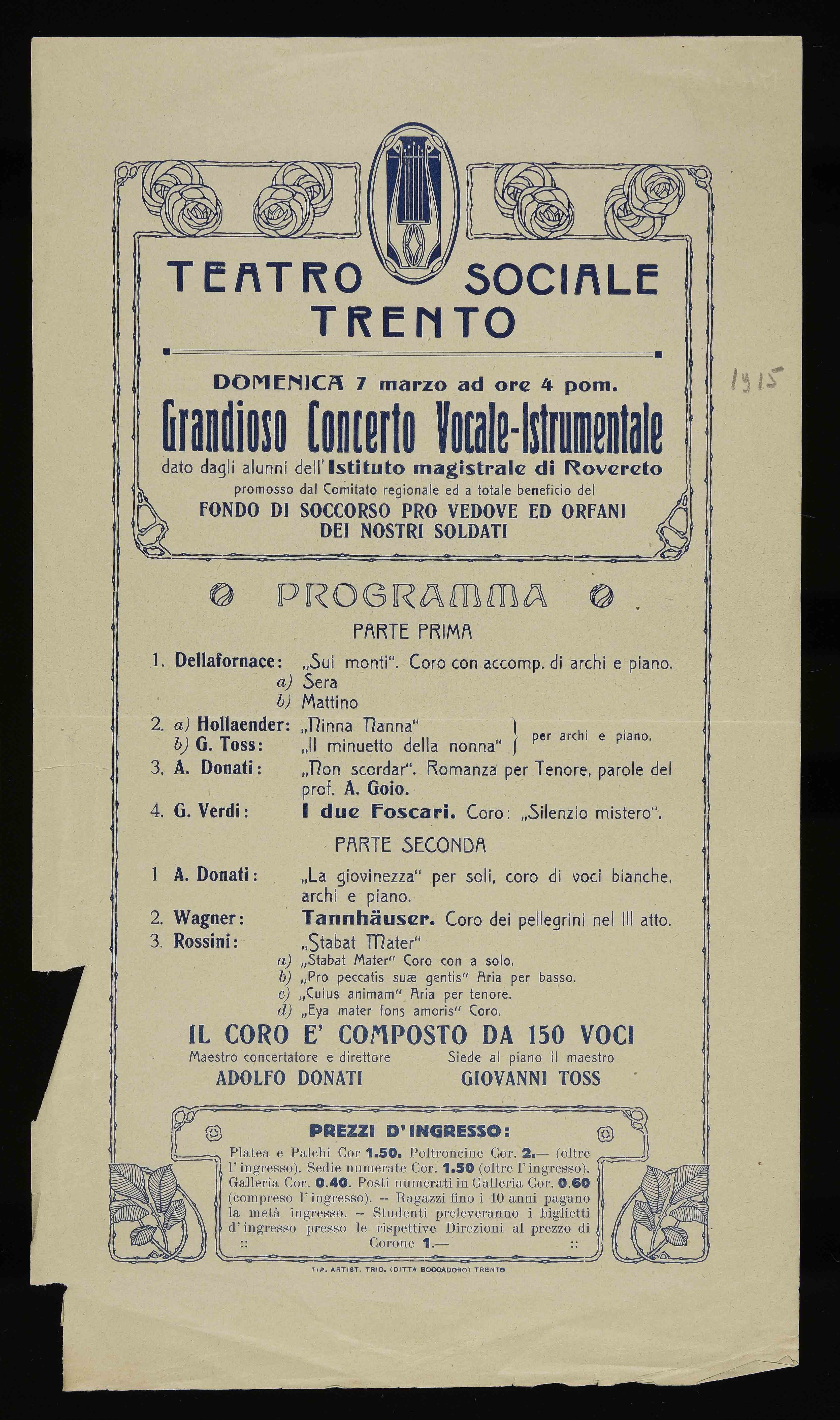 Teatro Sociale Trento. Domenica 7 marzo ad ore 4 pom. Grandioso concerto...