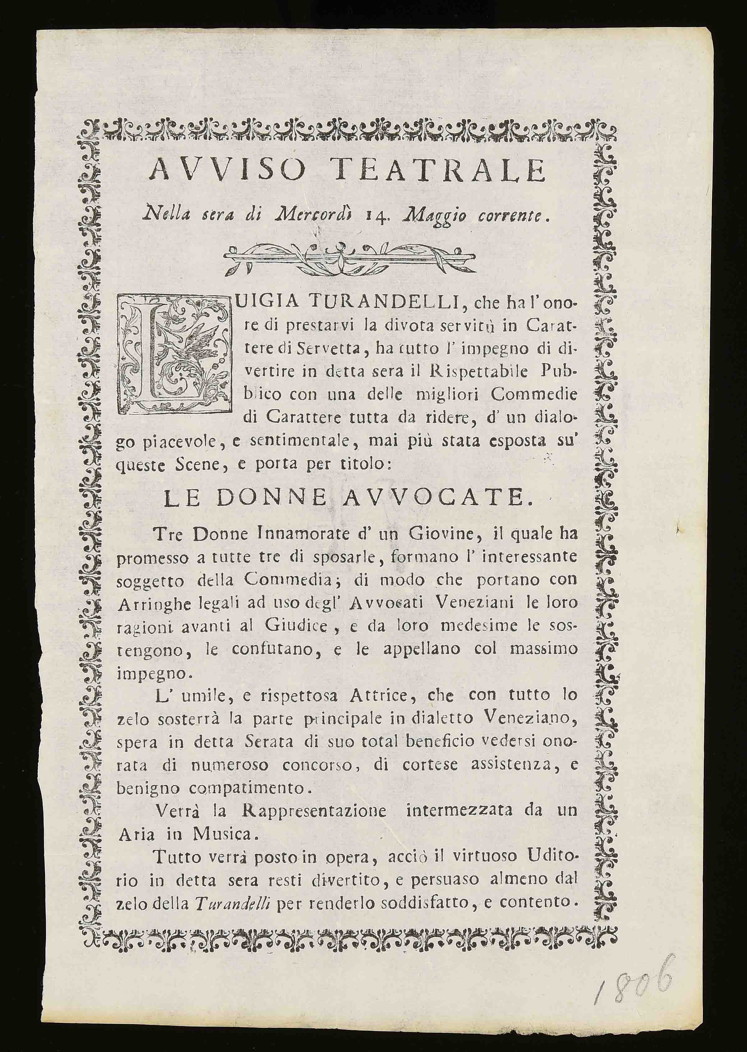 | Avviso teatrale. Nella sera di mercordì 14 maggio corrente |
