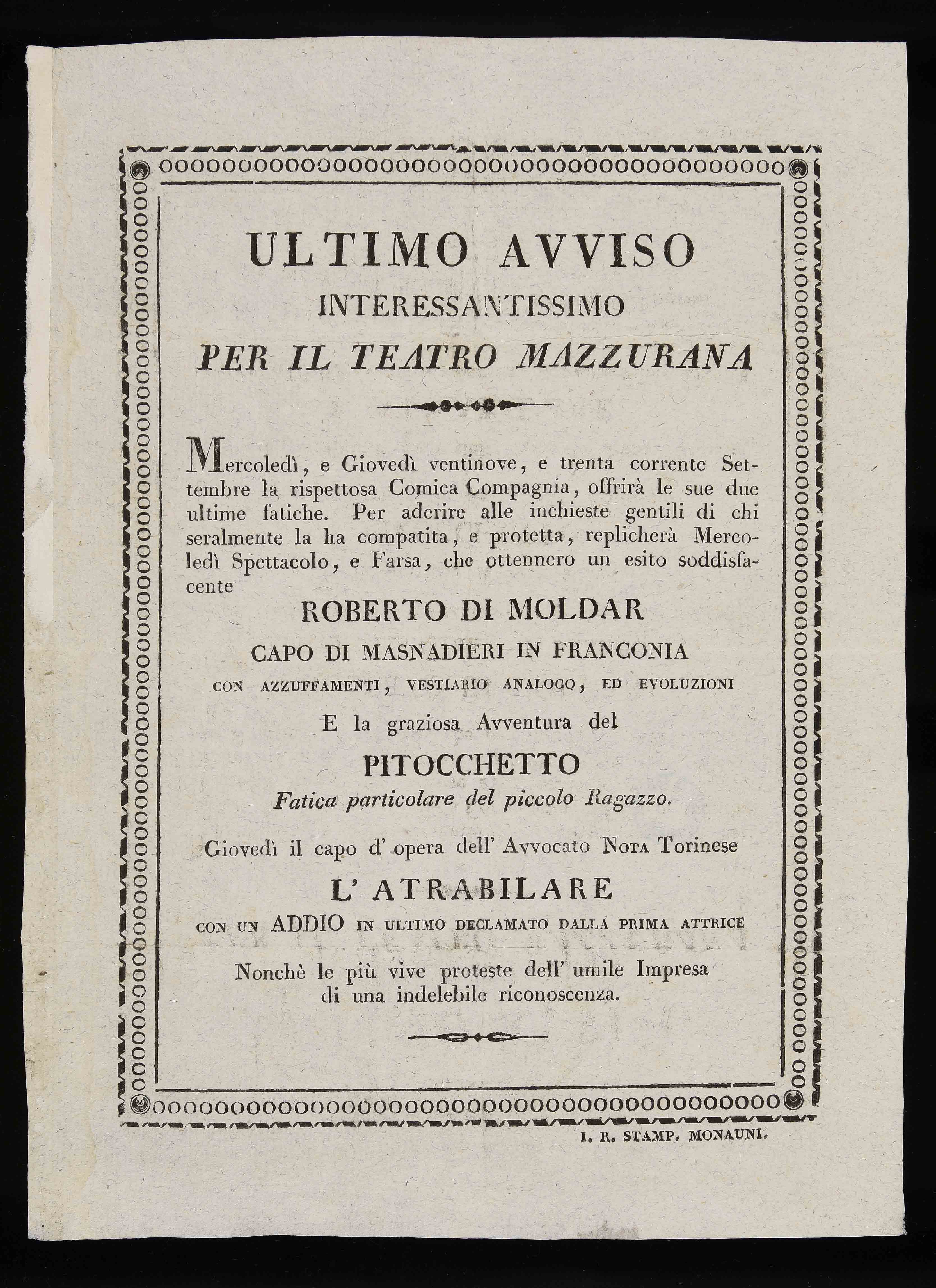| Ultimo avviso interessantissimo per il Teatro Mazzurana |