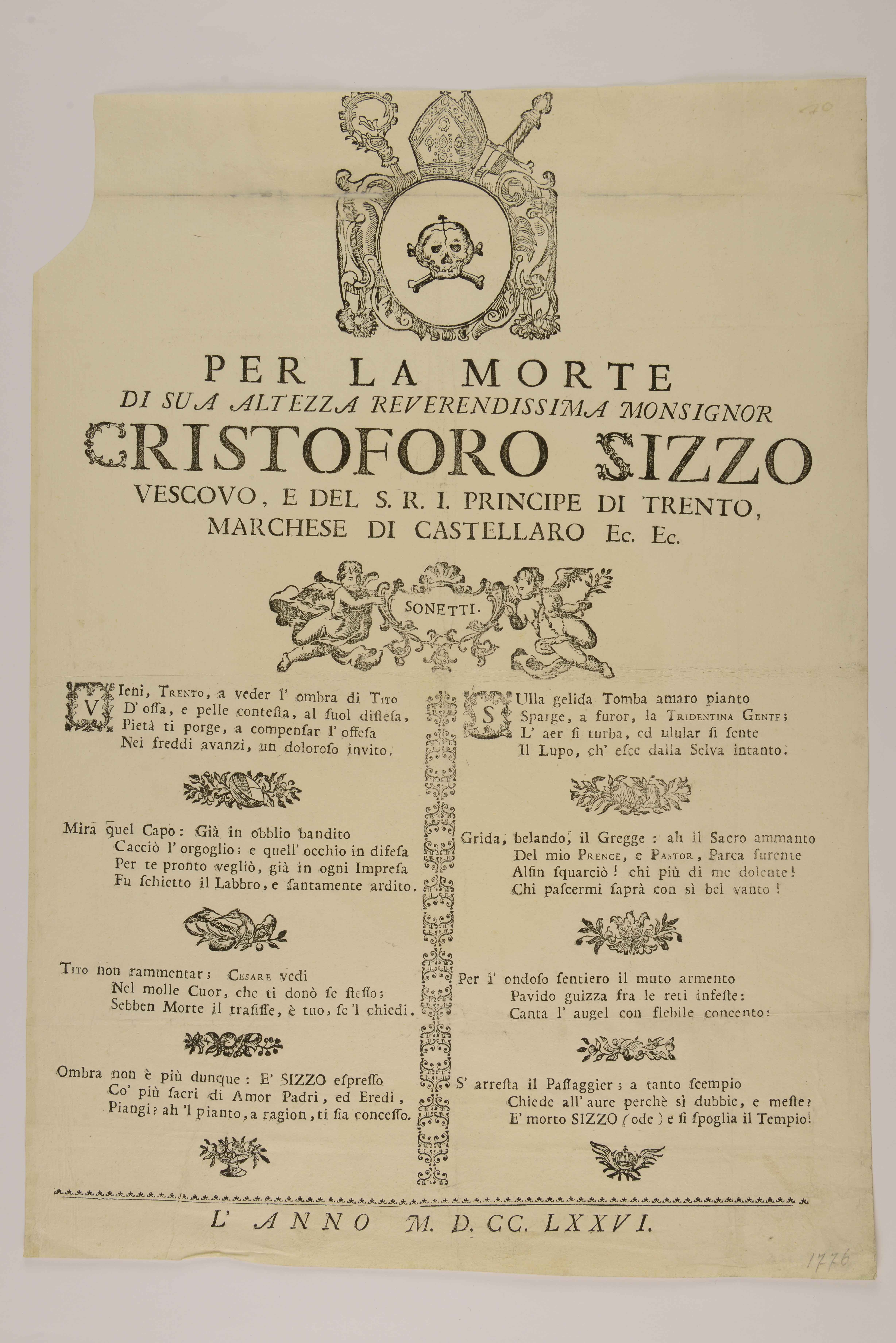 | Per la morte di sua altezza reverendissima monsignor Cristoforo Sizzo vescovo e del S.R.I. principe di Trento, marchese di Castellaro ec. ec. Sonetti |