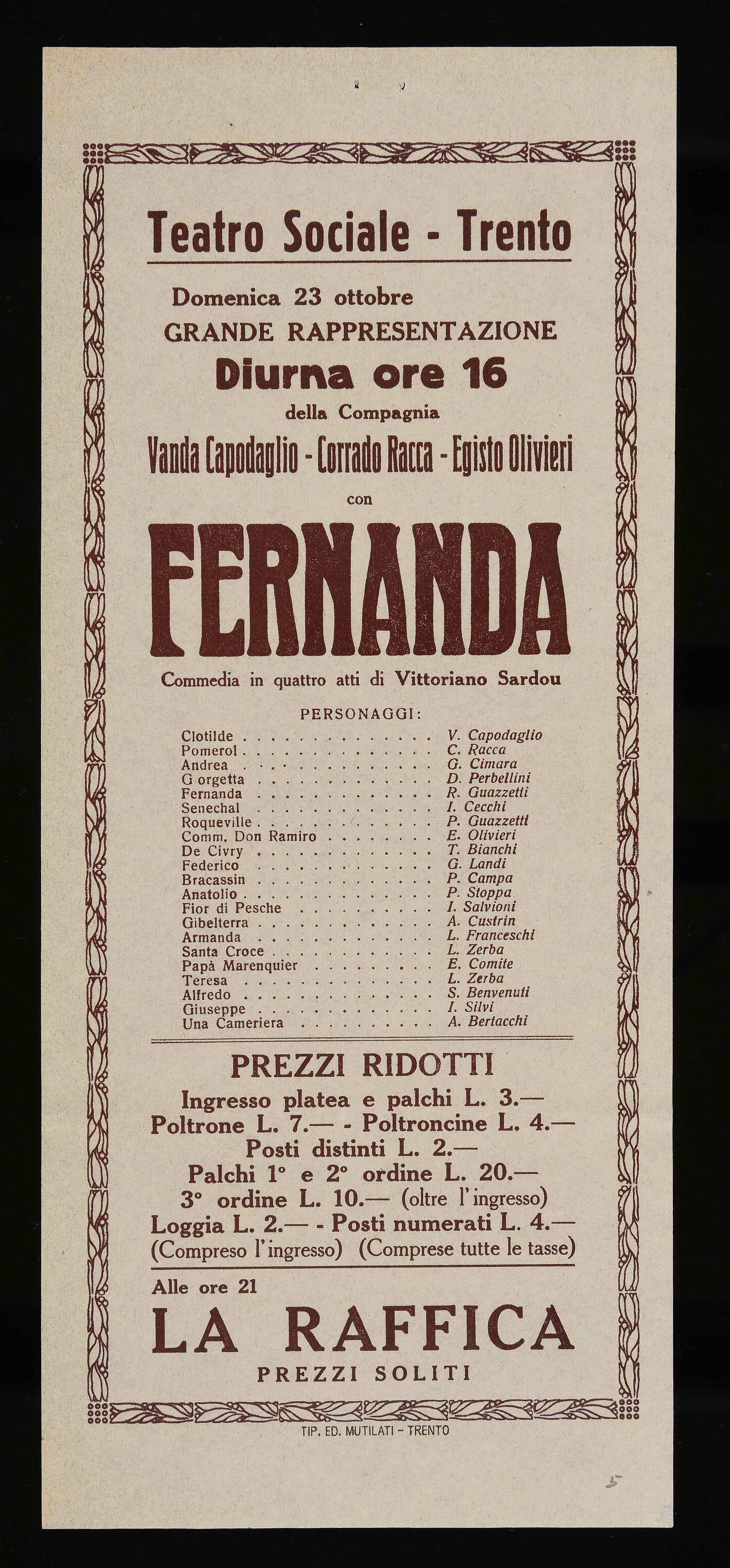 | Teatro Sociale – Trento. Domenica 23 ottobre grande rappresentazione diurna ore 16 |