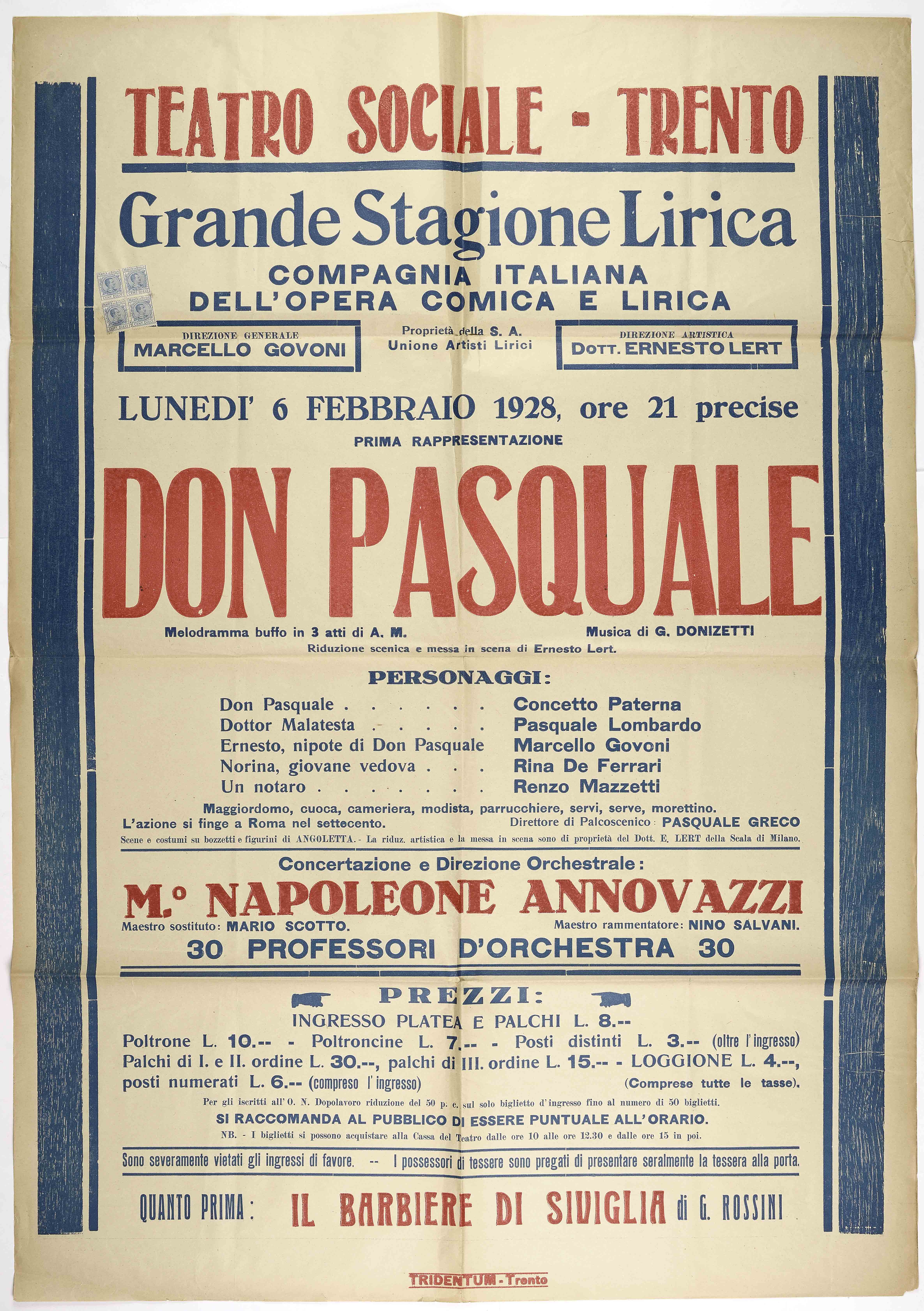 Teatro Sociale – Trento. Lunedì 6 febbraio 1928, ore 21 precise