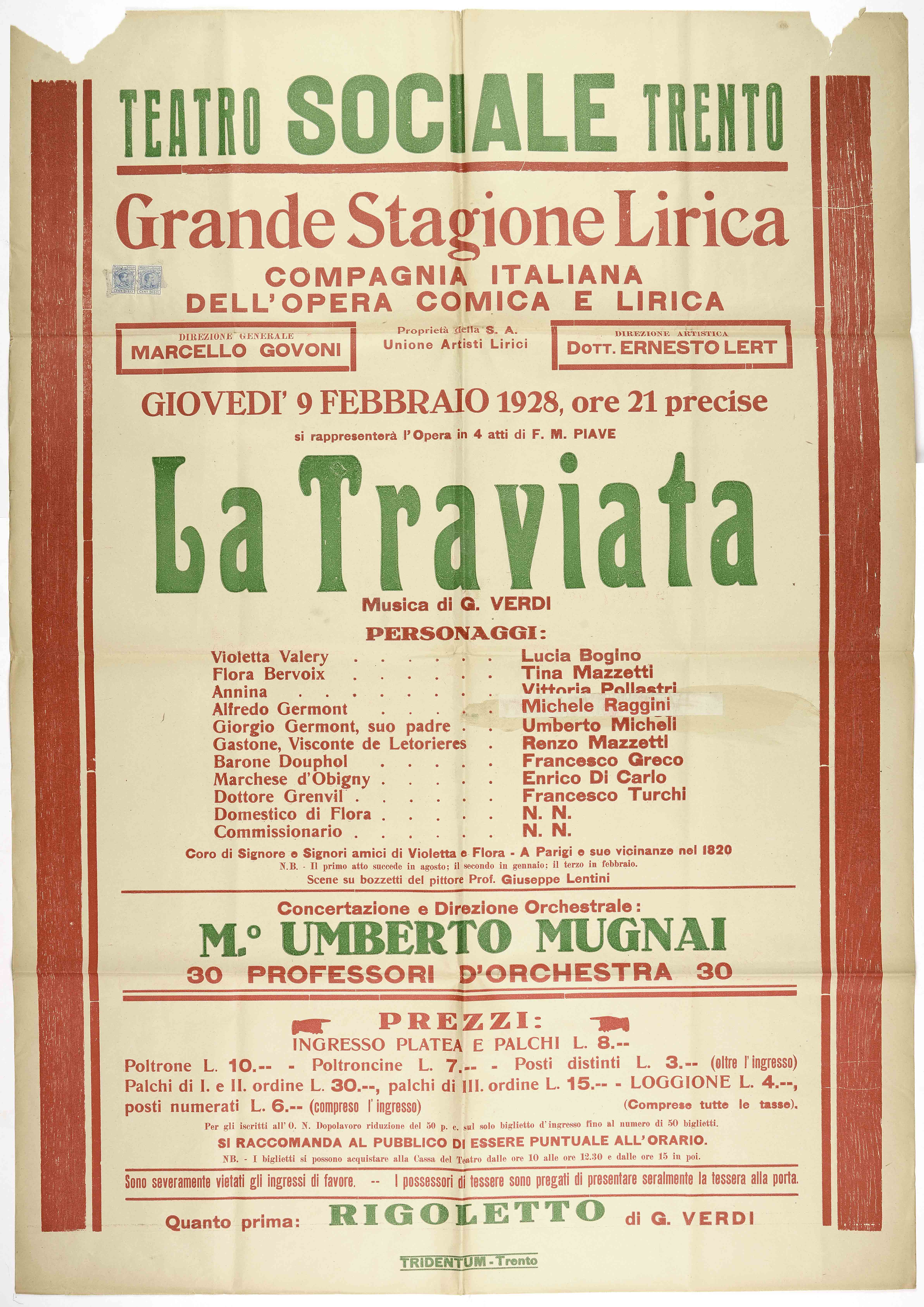 Teatro Sociale – Trento. Giovedì 9 febbraio 1928, ore 21 precise