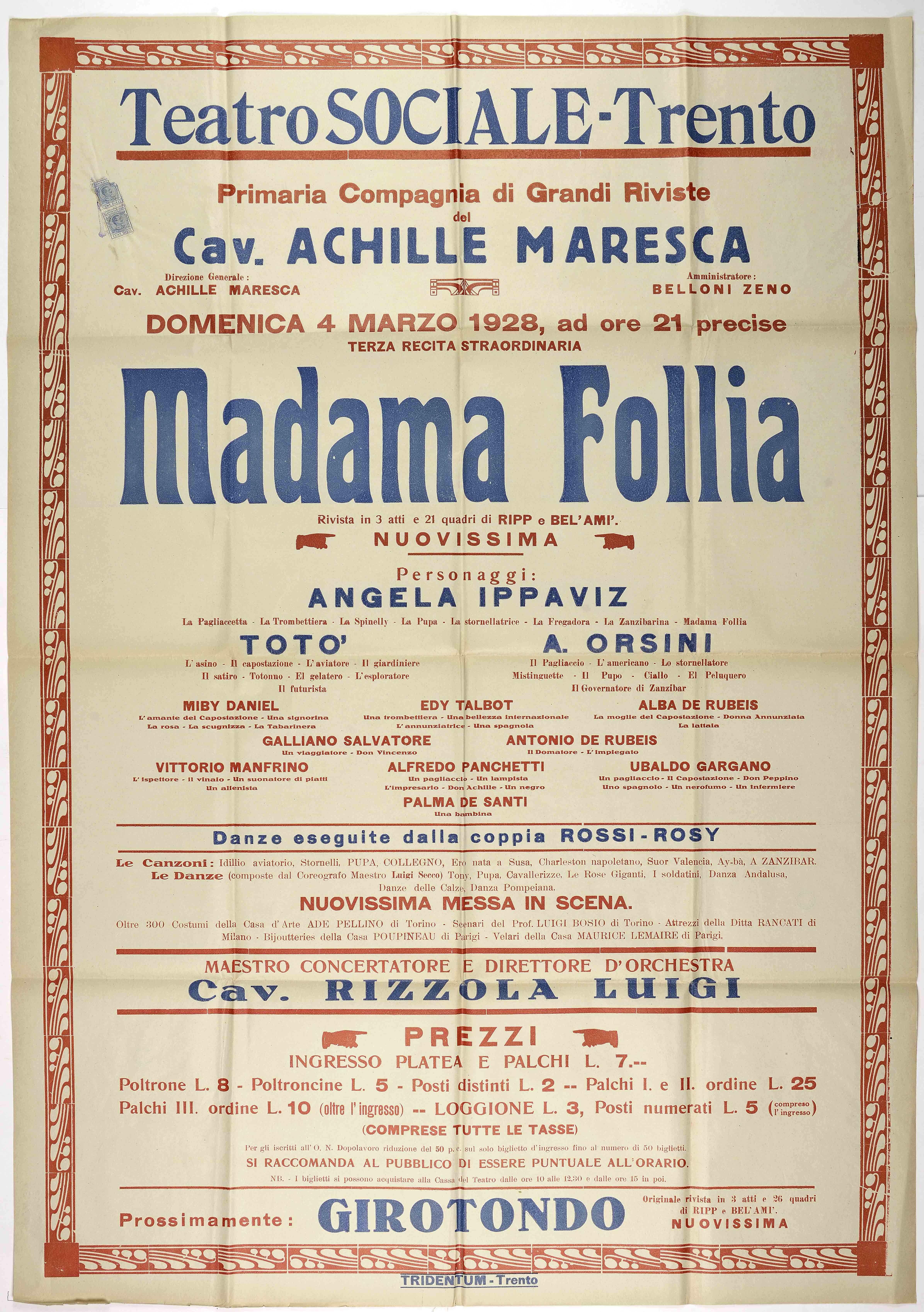 Teatro Sociale – Trento. Domenica 4 marzo 1928, ad ore 21 precise