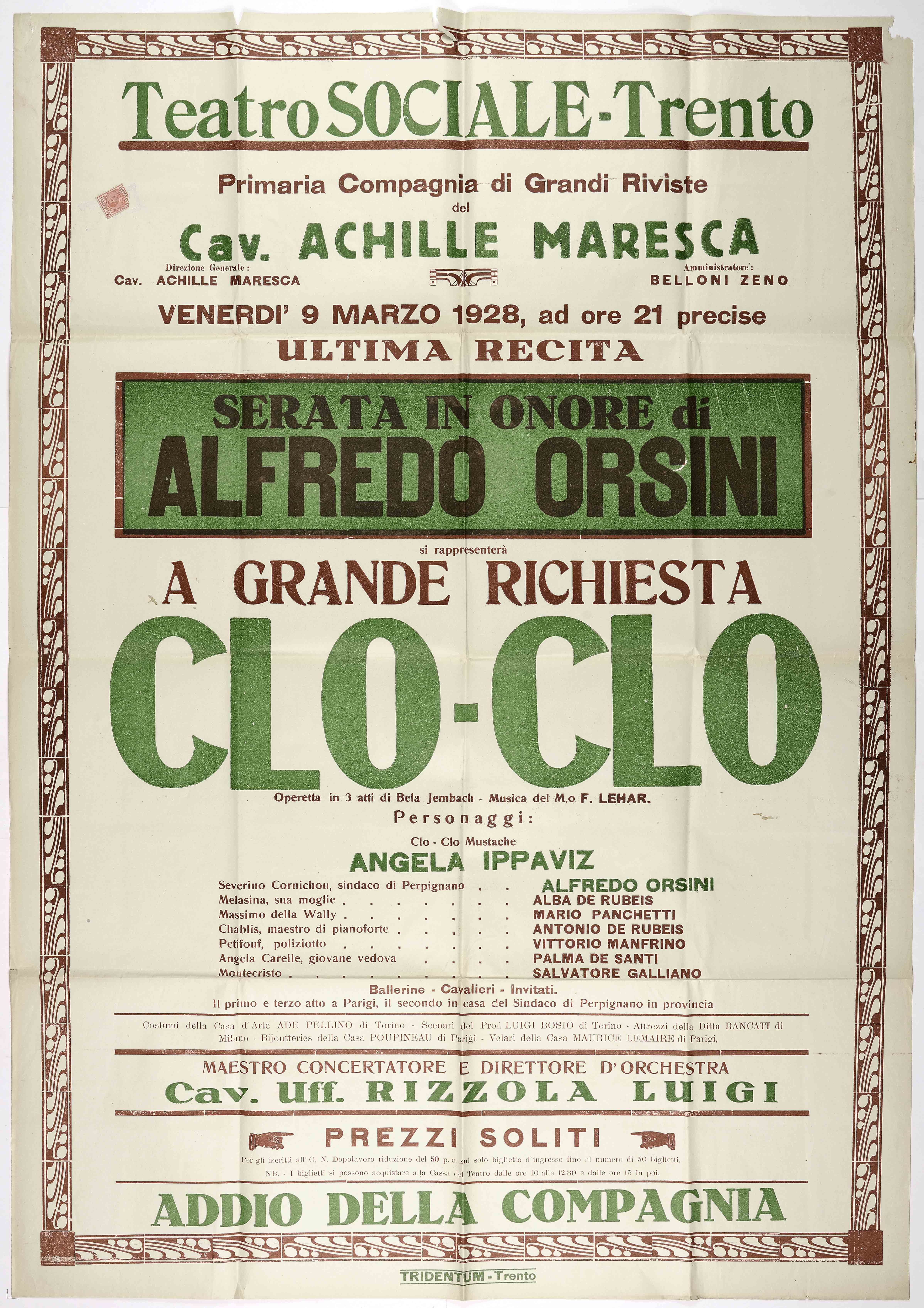 | Teatro Sociale – Trento. Venerdì 9 marzo 1928, ad ore 21 precise |