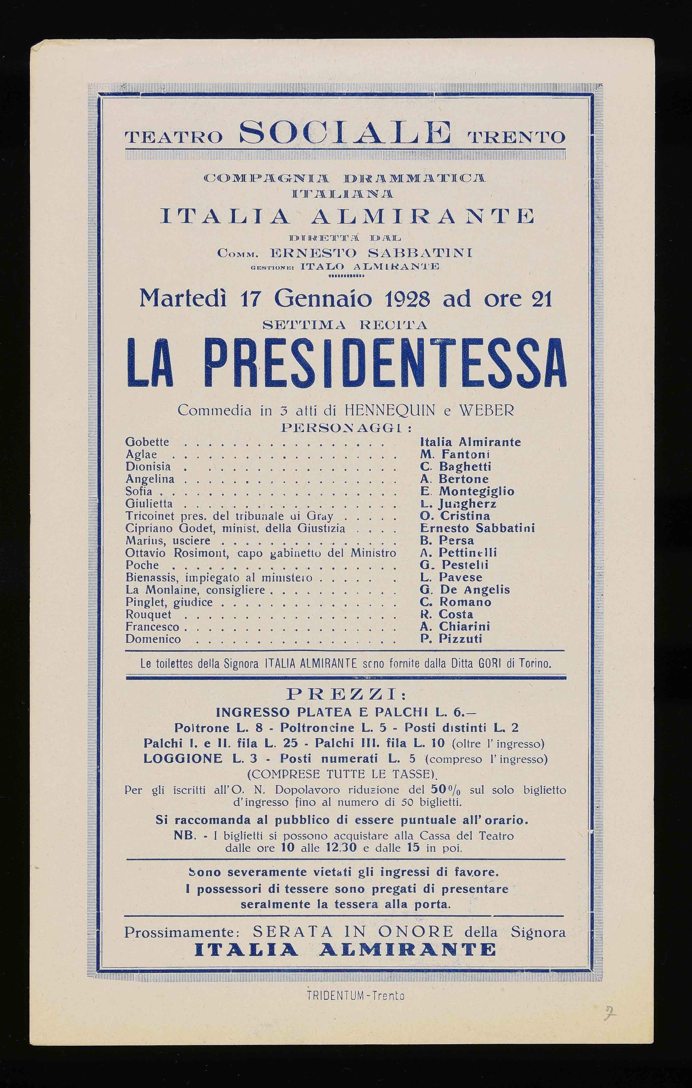 Teatro Sociale – Trento. Martedì 17 gennaio 1928 ad ore 21