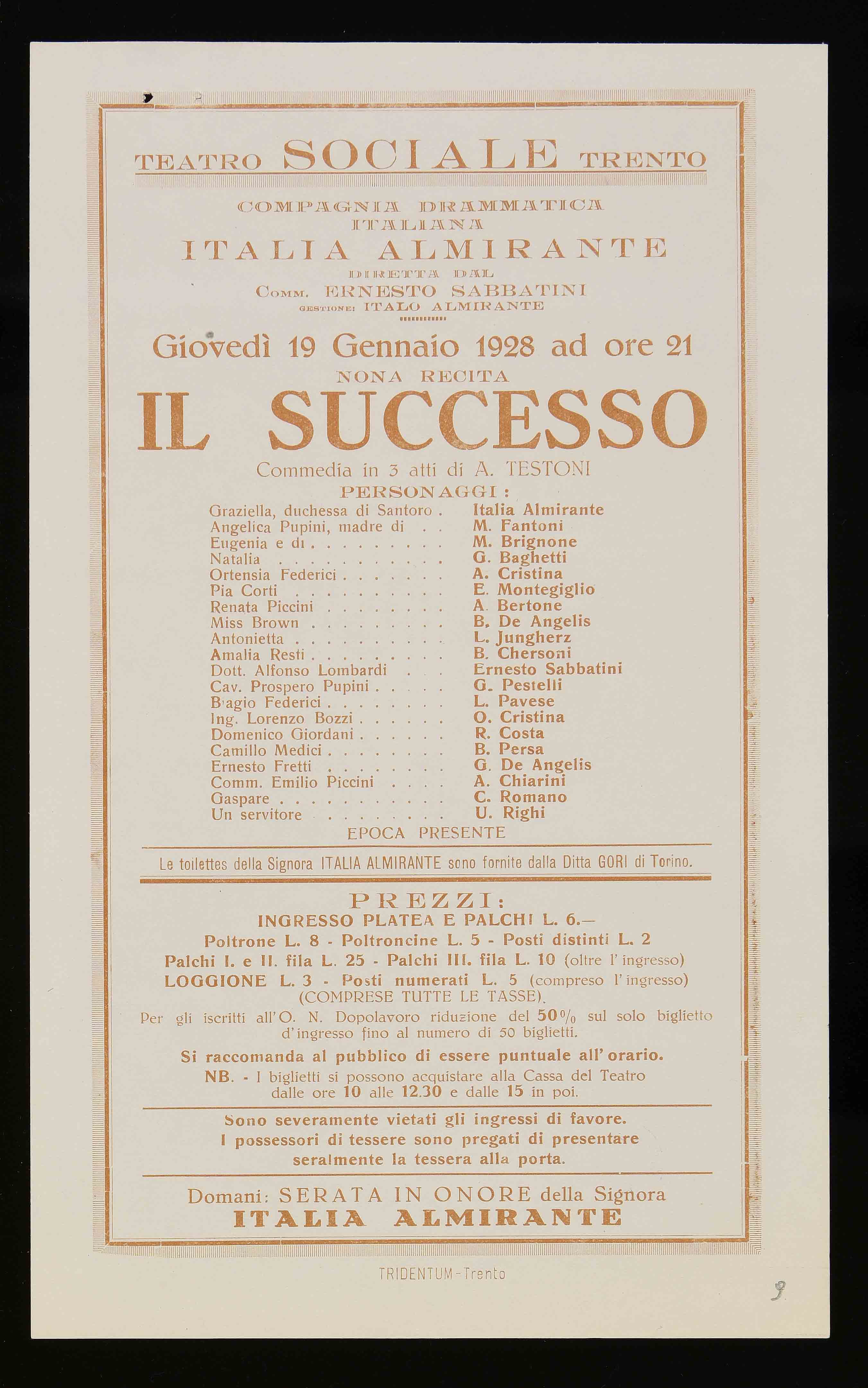 | Teatro Sociale – Trento. Giovedì 19 gennaio 1928 ad ore 21 |