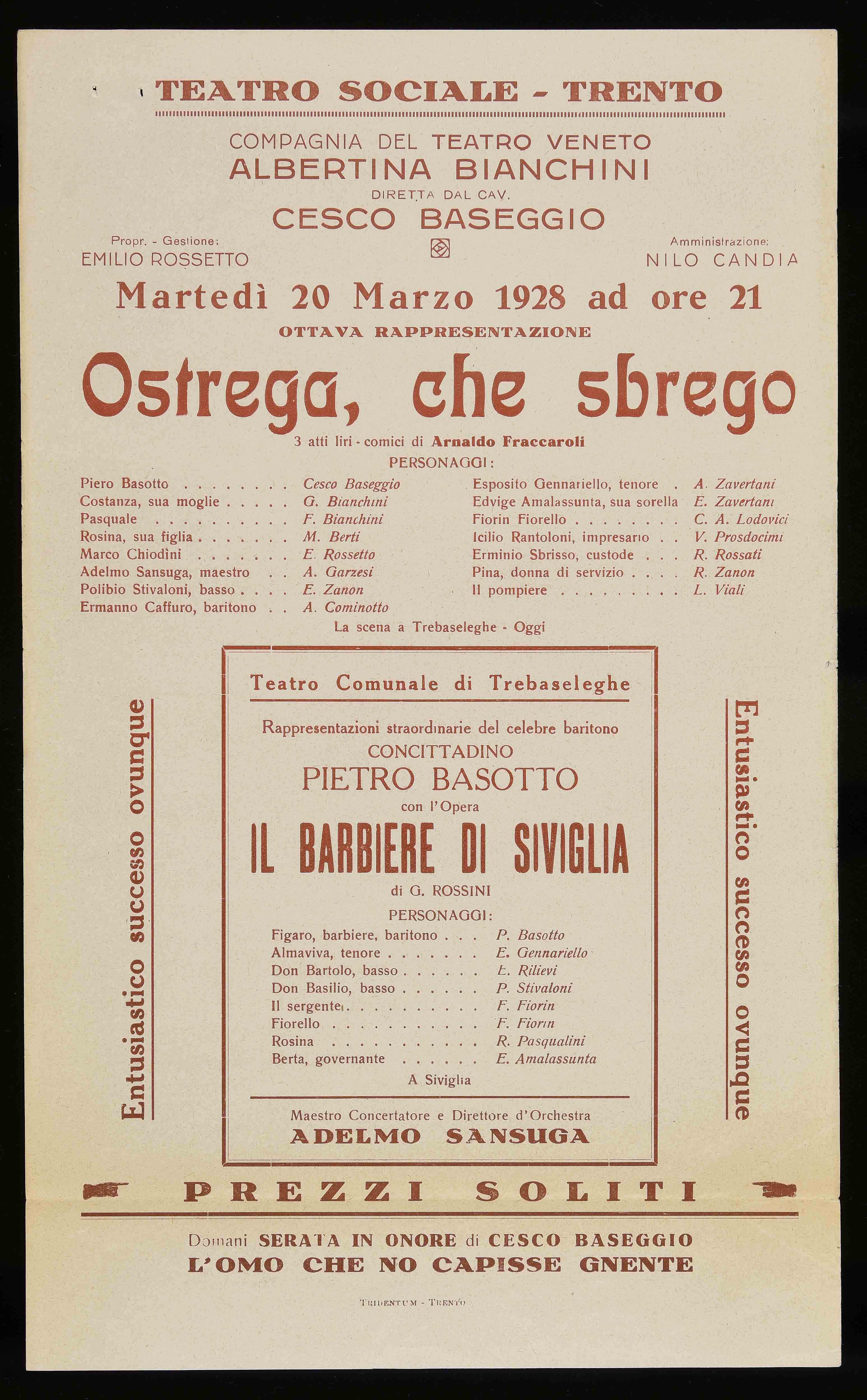 | Teatro Sociale – Trento. Martedì 20 marzo 1928 ad ore 21 |