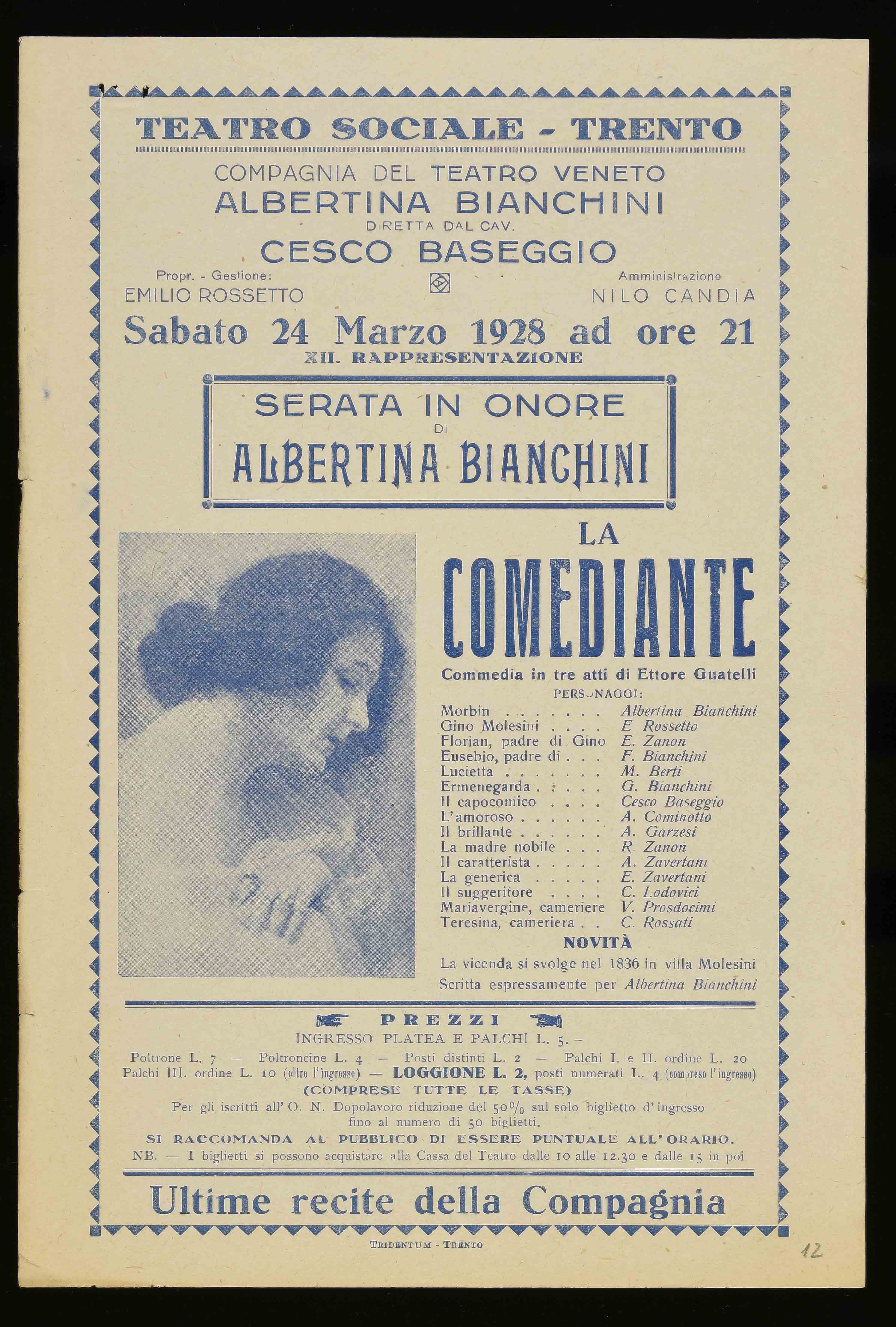 Teatro Sociale – Trento. Sabato 24 marzo 1928 ad ore 21