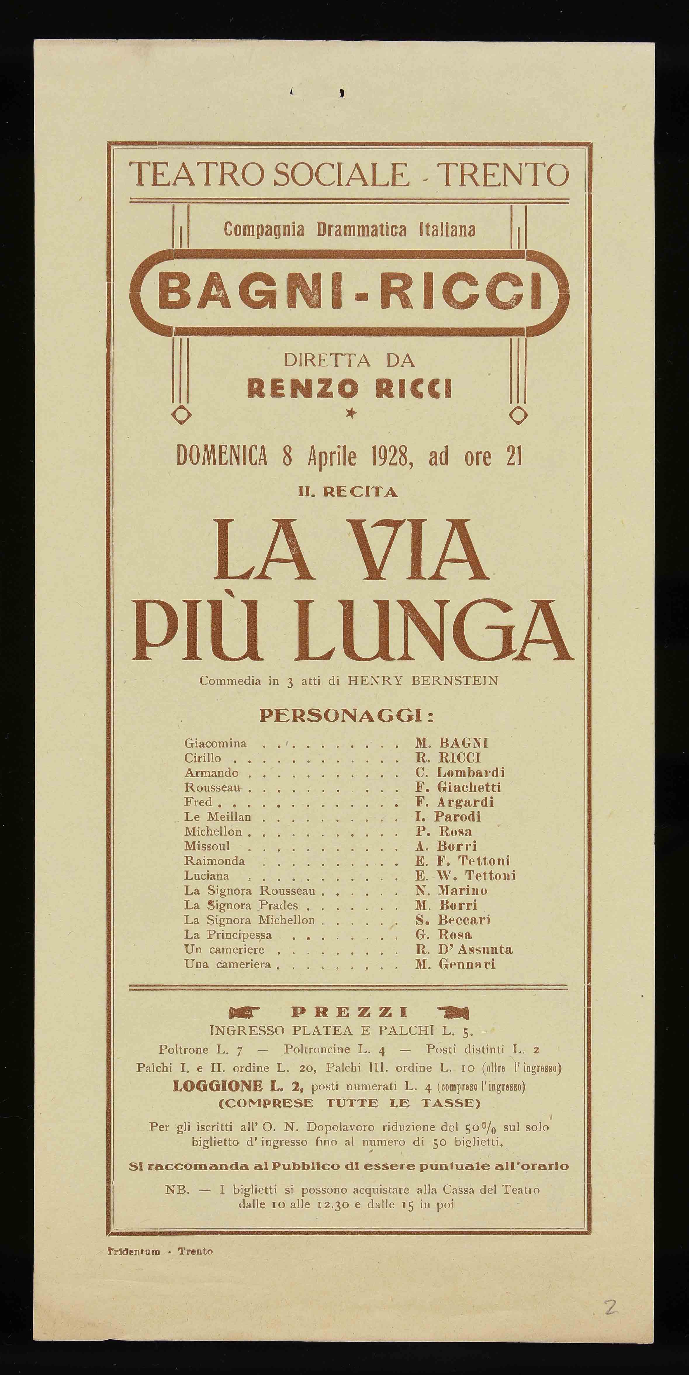 | Teatro Sociale – Trento. Domenica 8 aprile 1928, ad ore 21 |