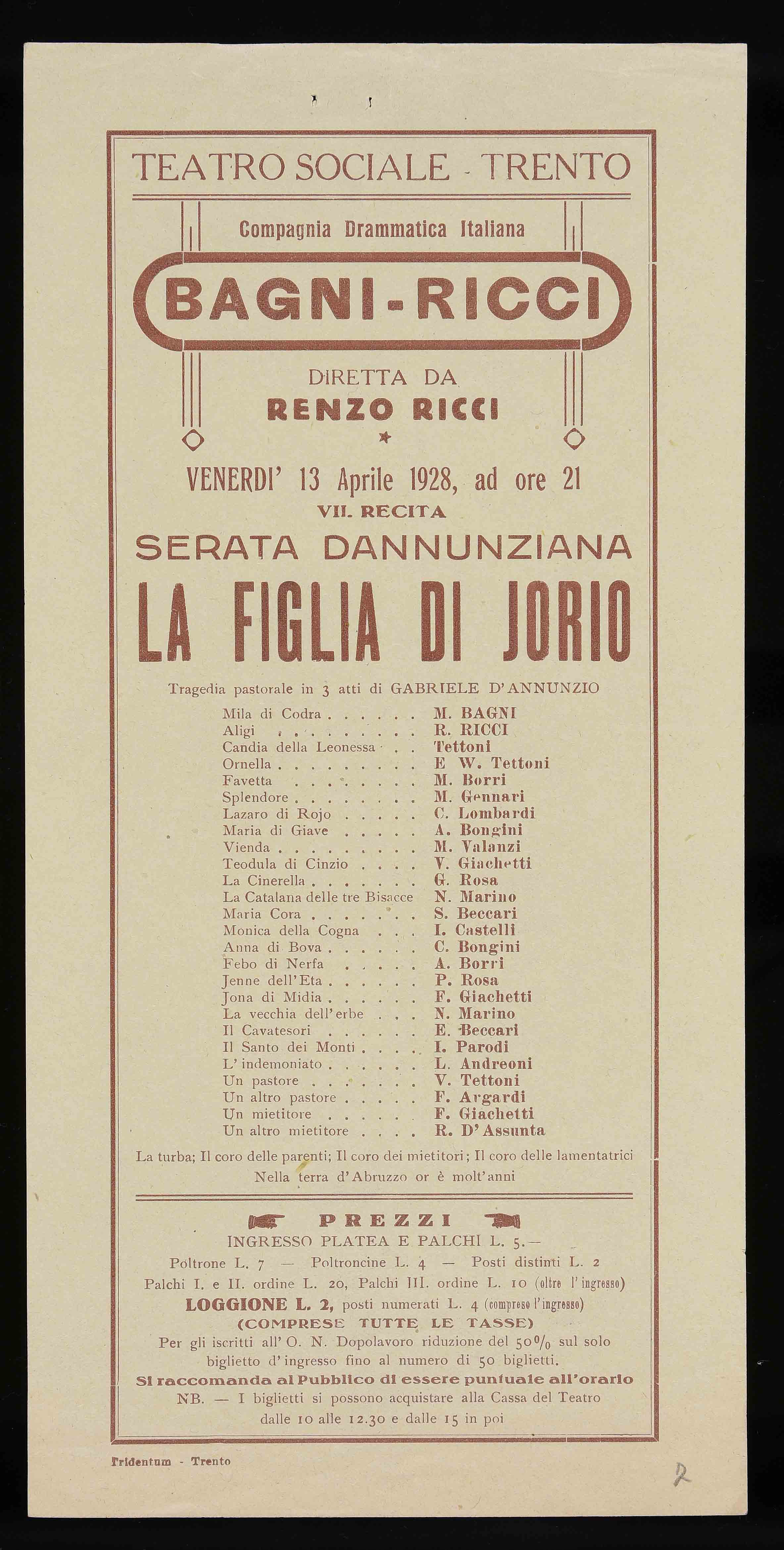 | Teatro Sociale – Trento. Venerdì 13 aprile 1928, ad ore 21 |