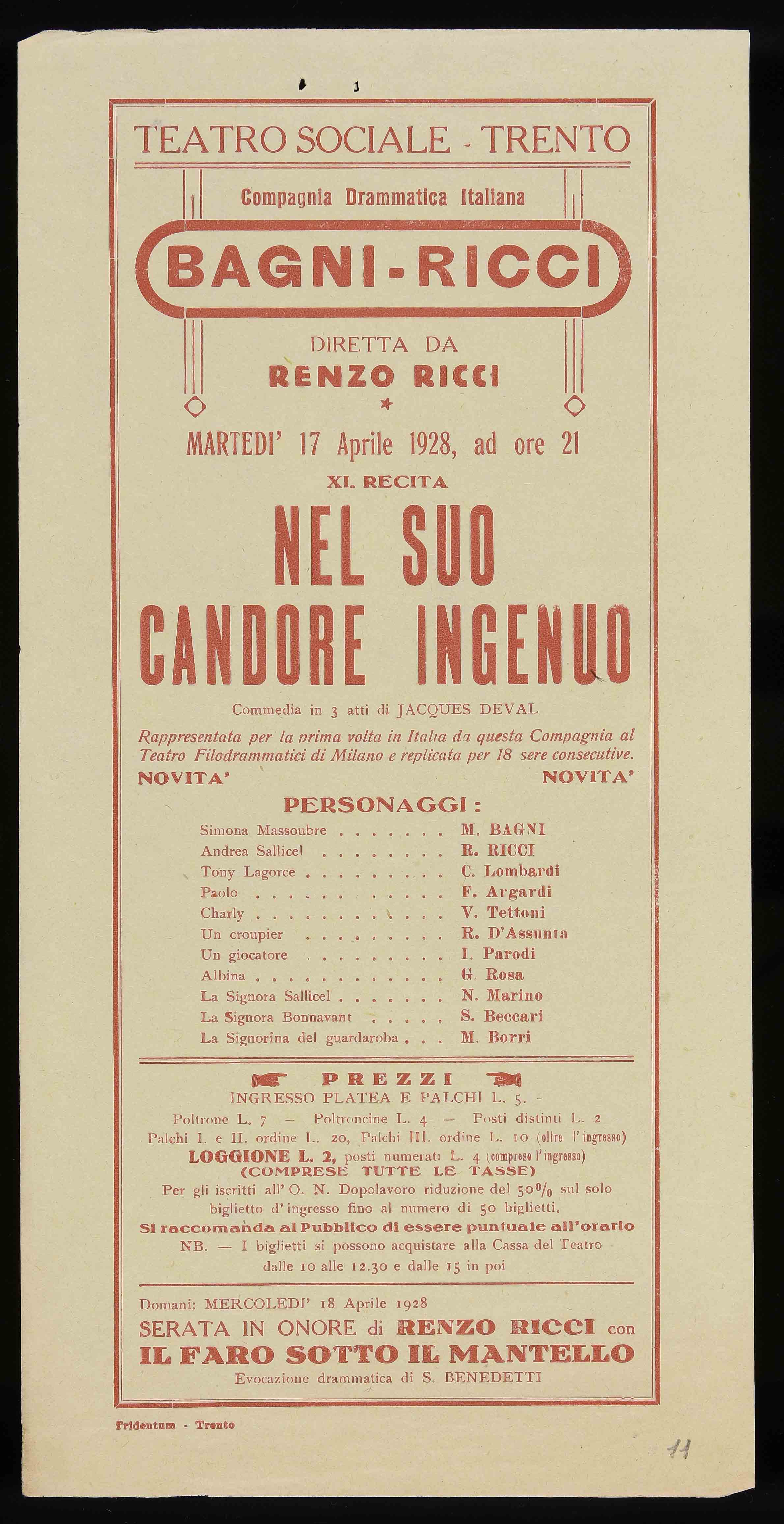 Teatro Sociale – Trento. Martedì 17 aprile 1928, ad ore 21