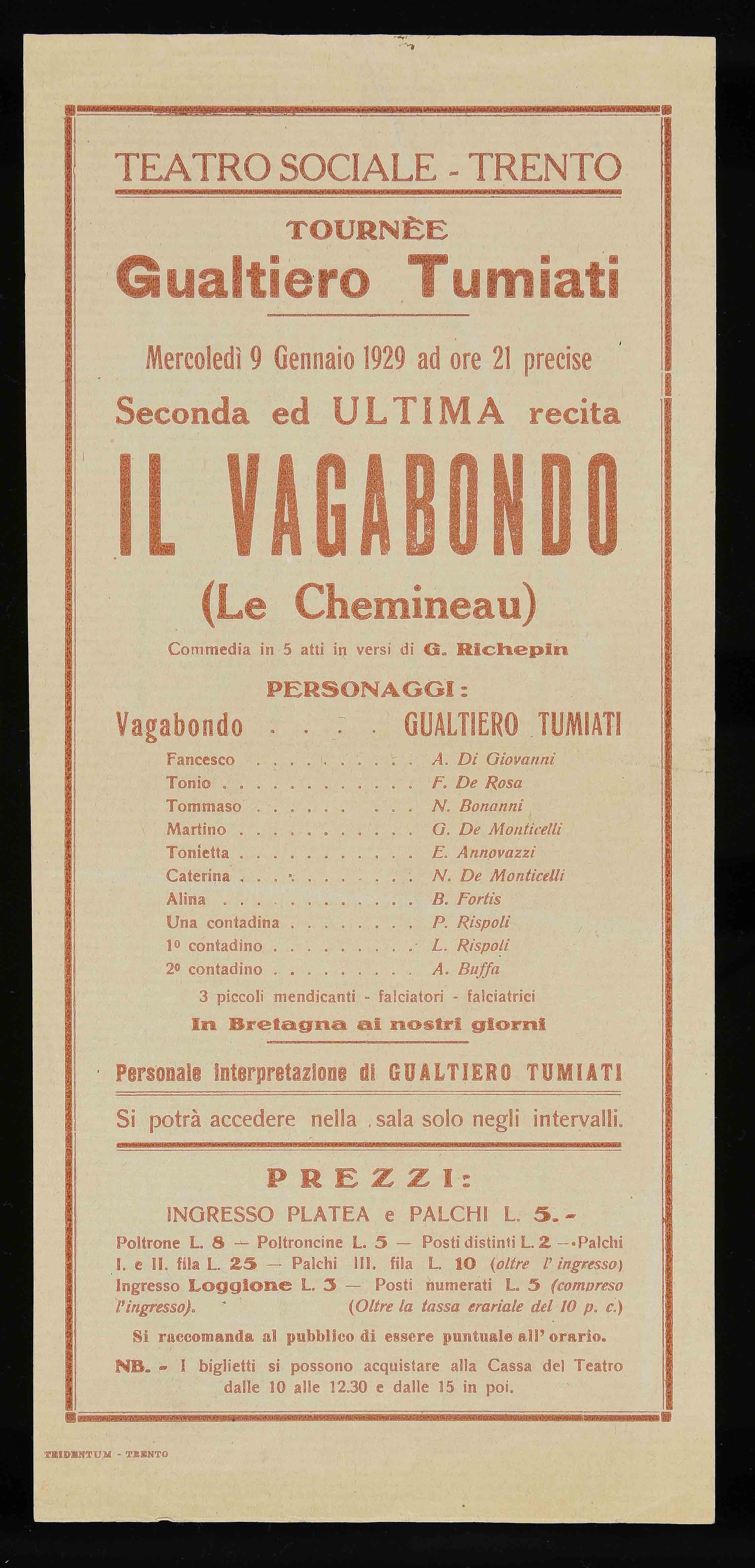 | Teatro Sociale – Trento. Mercoledì 9 gennaio 1929 ad ore 21 precise |