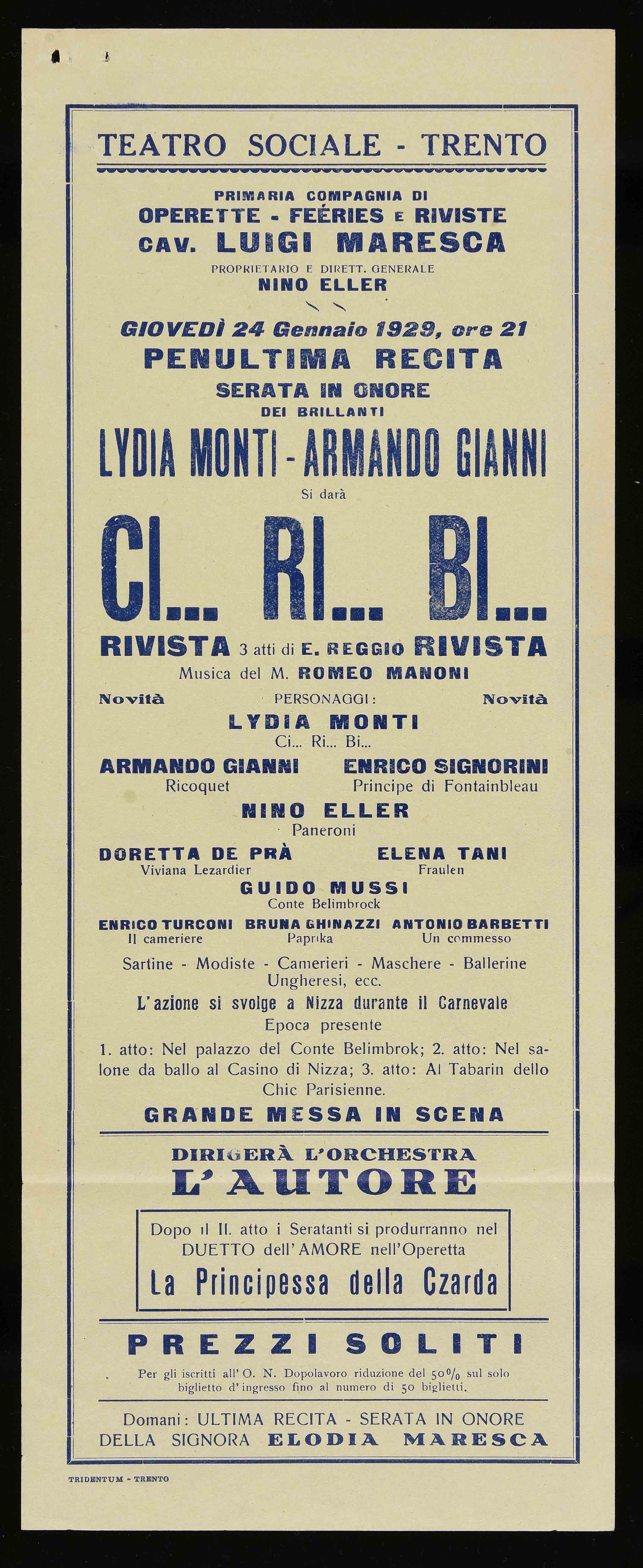 | Teatro Sociale – Trento. Giovedì 24 gennaio 1929, ore 21 |