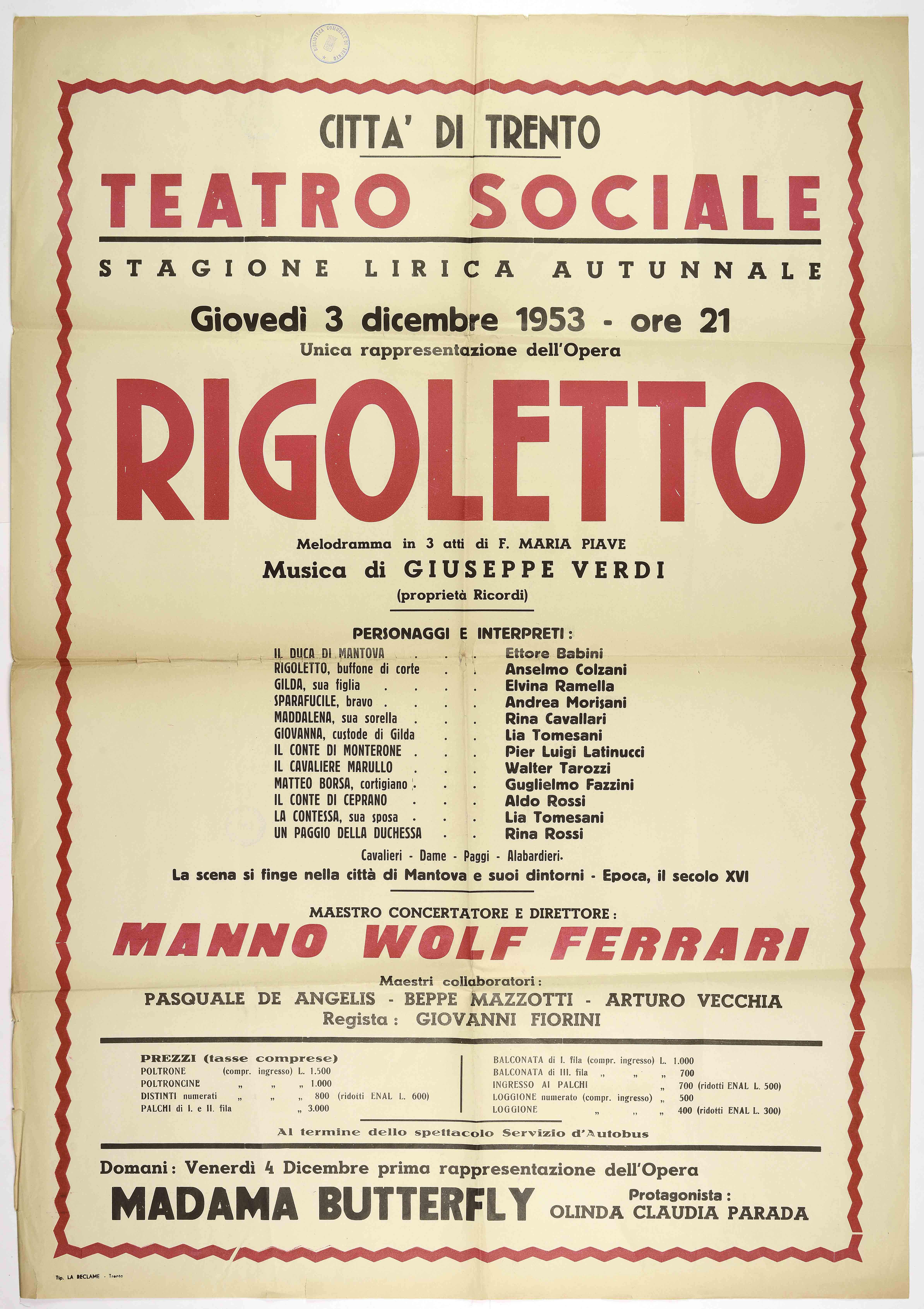 | Città di Trento – Teatro Sociale. Giovedì 3 dicembre 1953 – ore 21 |