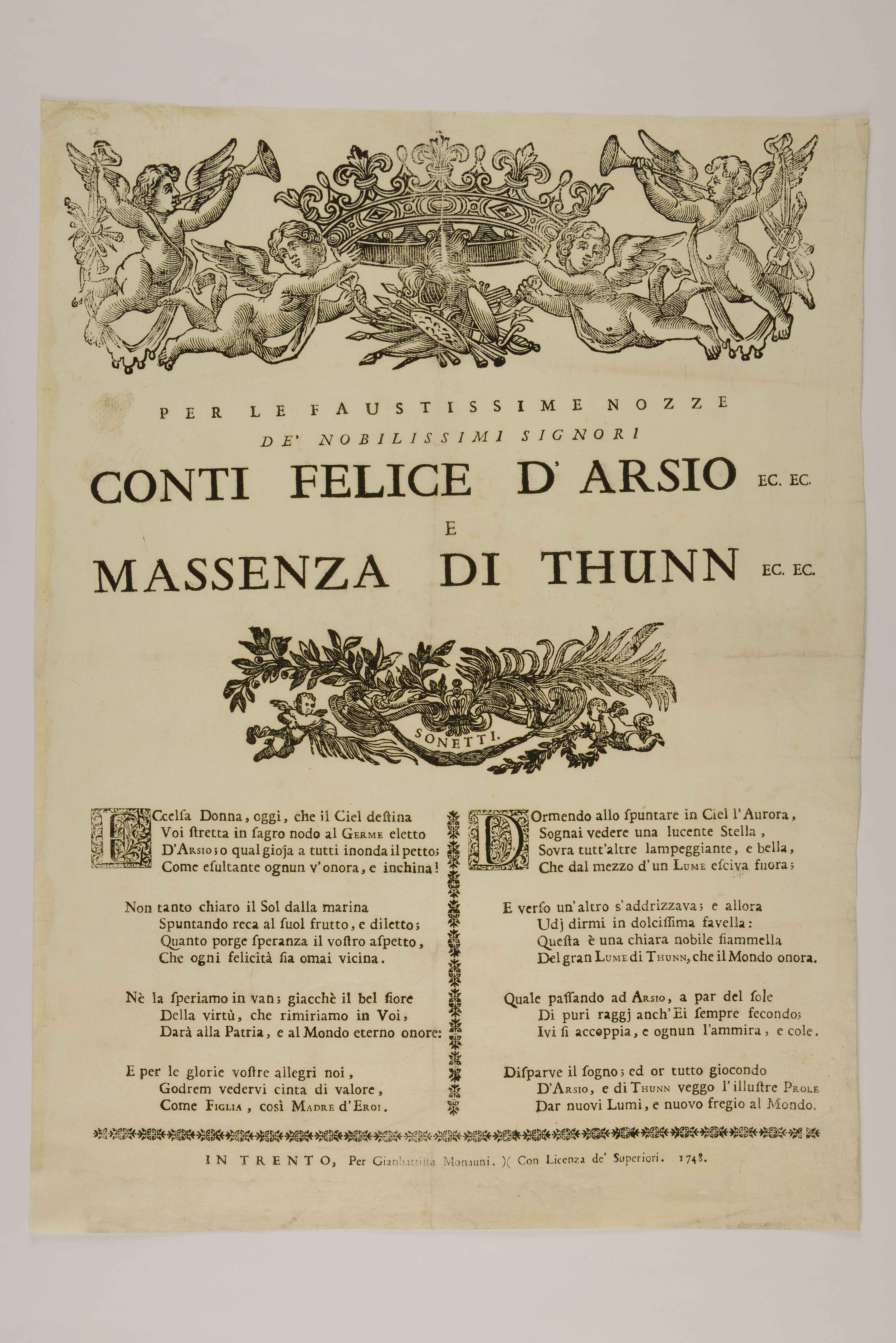 | Per le faustissime nozze de' nobilissimi signori conti Felice d'Arsio ec. ec. e Massenza di Thunn ec. ec. Sonetti |