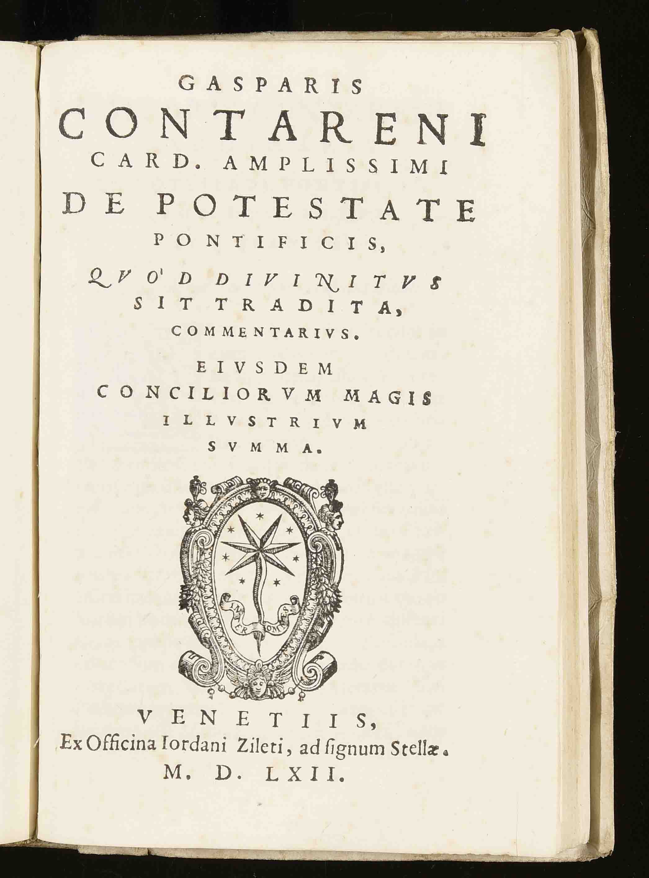 | Gasparis Contareni card. amplissimi De potestate pontificis, quod divinitus sit tradita, commentarius. Eiusdem conciliorum magis illustrium summa |