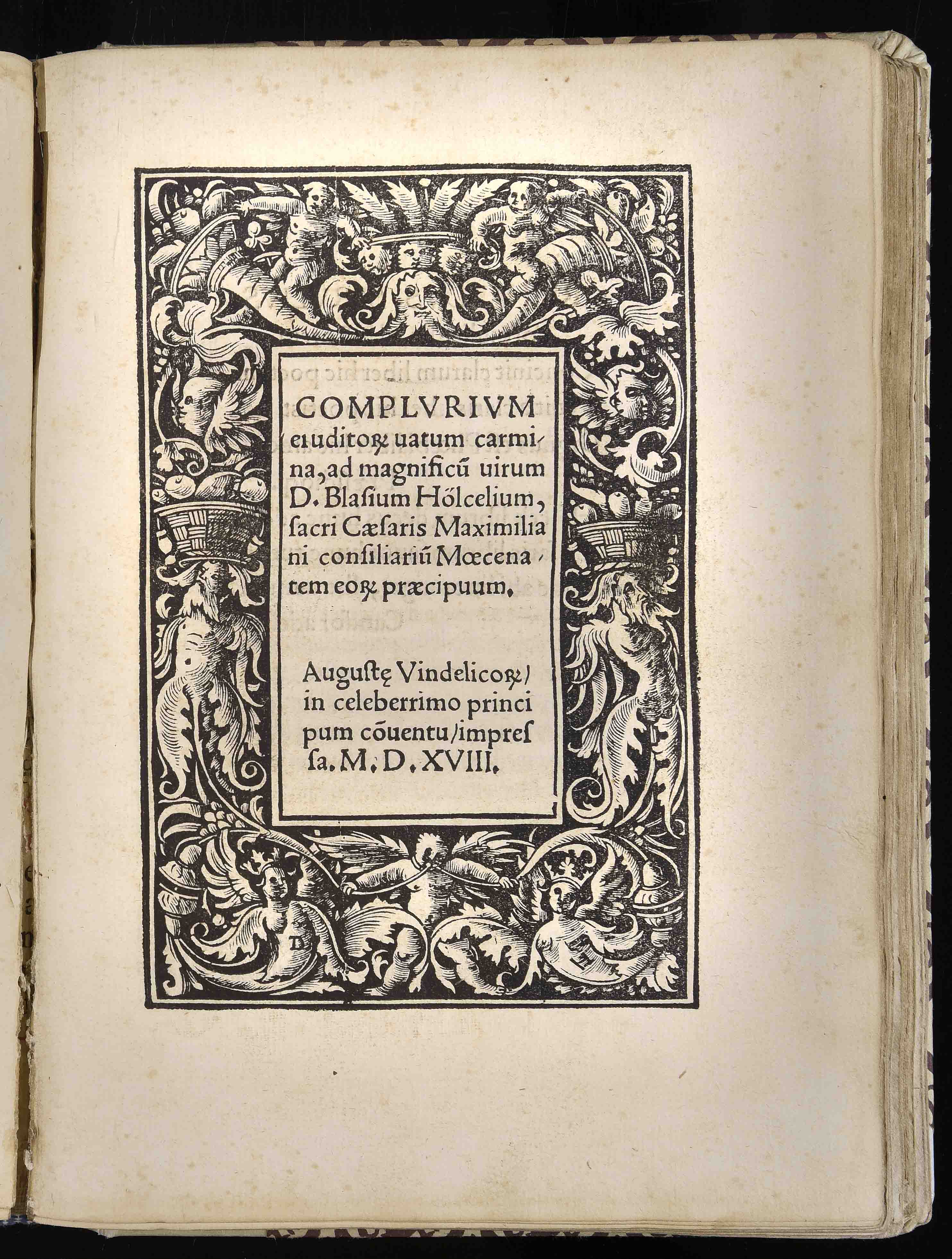 | Complurium eruditorum vatum carmina, ad magnificum virum D. Blasium Holcelium, sacri Caesaris Maximiliani consiliarum Moecenatem eorum praecipuum |