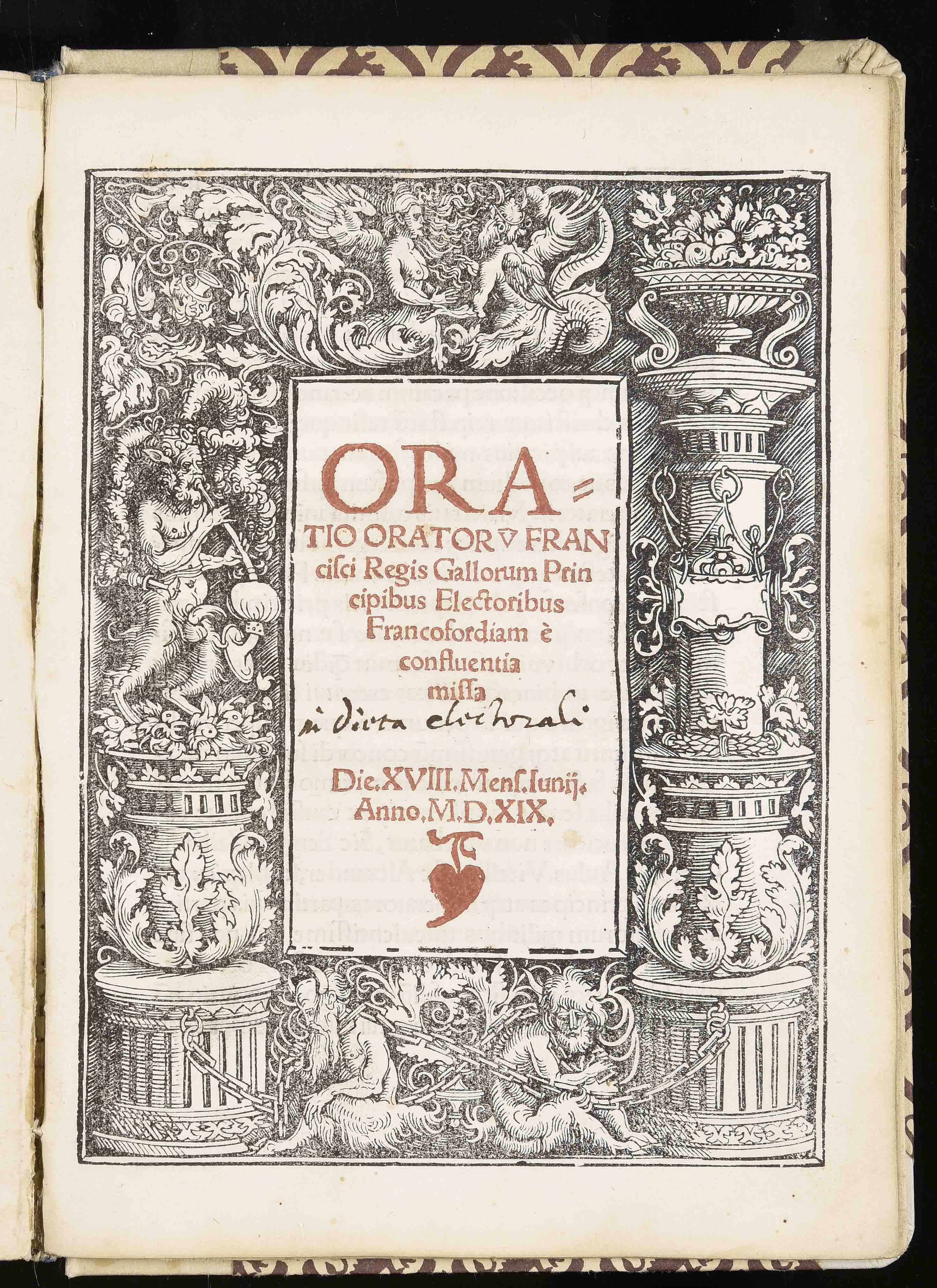 | Oratio oratorum Francisci regis Gallorum principibus electoribus Francofordiam e confluentia missa die XVIII. mens. iunii. anno MDXIX. |