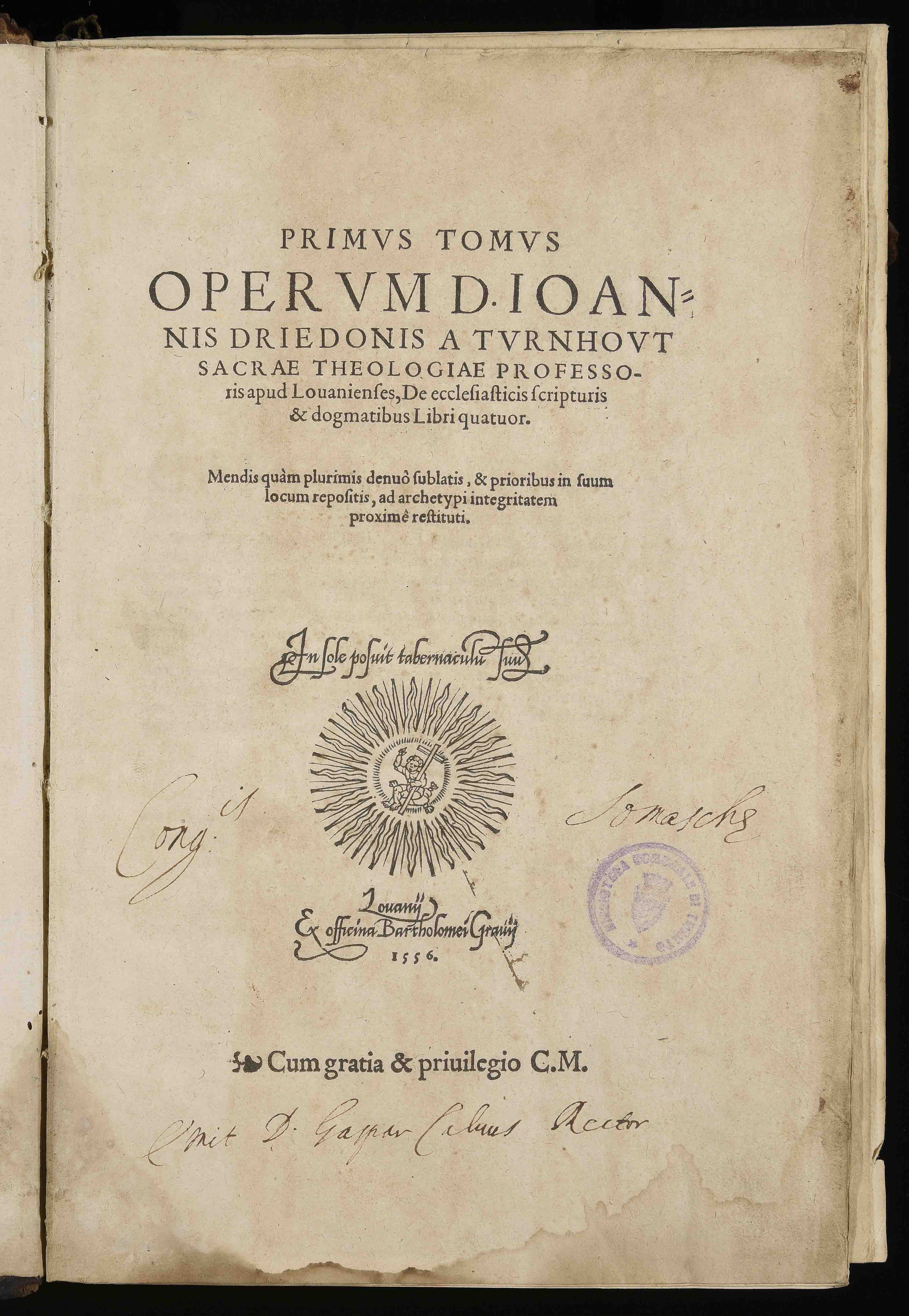 Primus tomus operum d. Ioannis Driedonis a Turnhout sacrae theologiae...