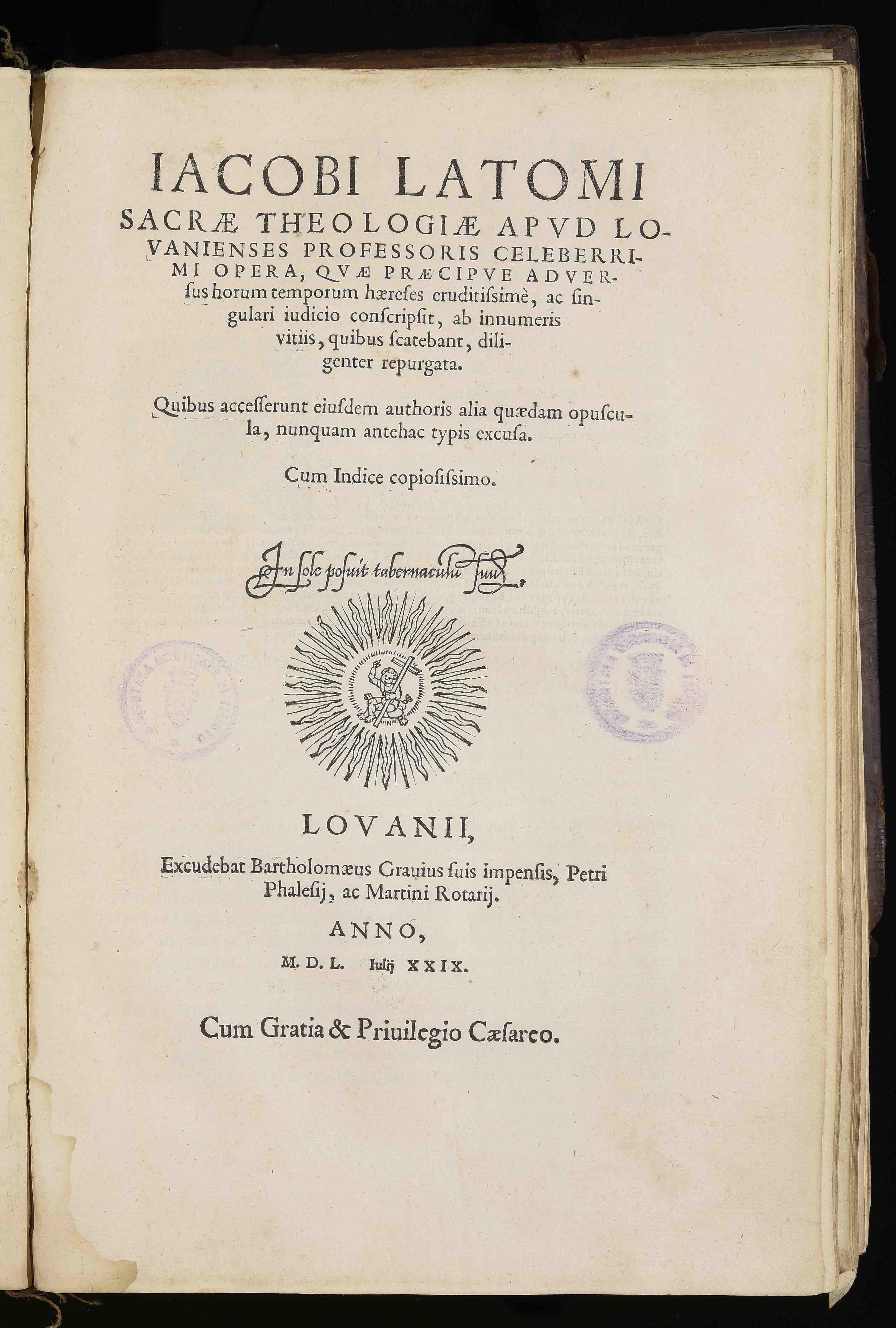 | Iacobi Latomi sacrae theologiae apud Lovanienses professoris celeberrimi Opera, quae praecipue adversus horum temporum haereses eruditissime, ac singulari iudicio conscripsit, ab innumeris vitiis, quibus scatebant, diligenter repurgata |