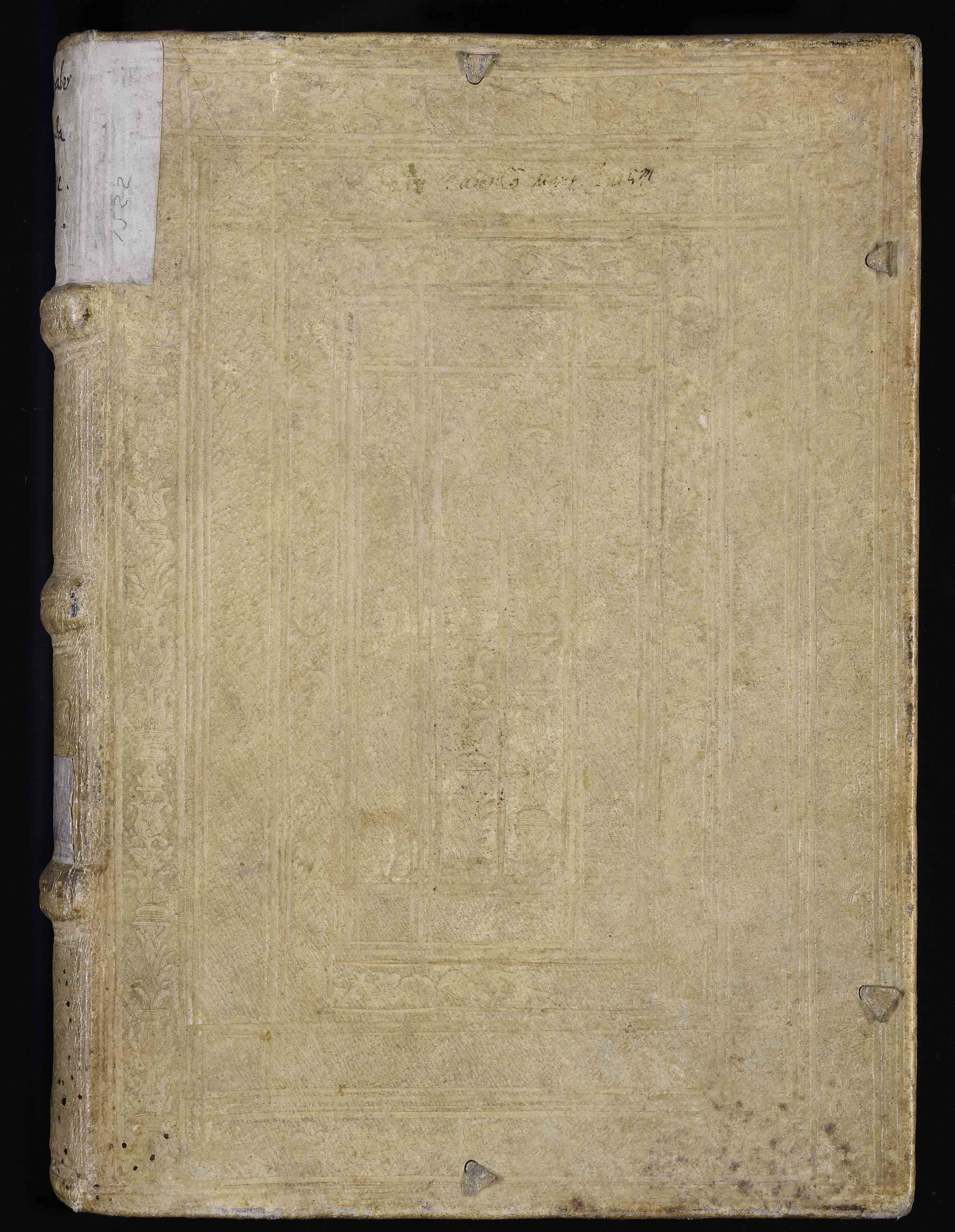 Legatura in pelle di porco su cartoni del XVI sec., 295x215 mm. Dorso titolato, piatto anteriore parzialmente titolato. Rarissimi segni di attenzione e postille marginali. Sul frontespizio dell'opera dedica manoscritta di Johannes Fabri a Bernardo Cles (cfr. Biblioteca del cardinale 1985 , scheda 123). Antiche segnature di collocazione: I 39 c 139, 236 b 12.