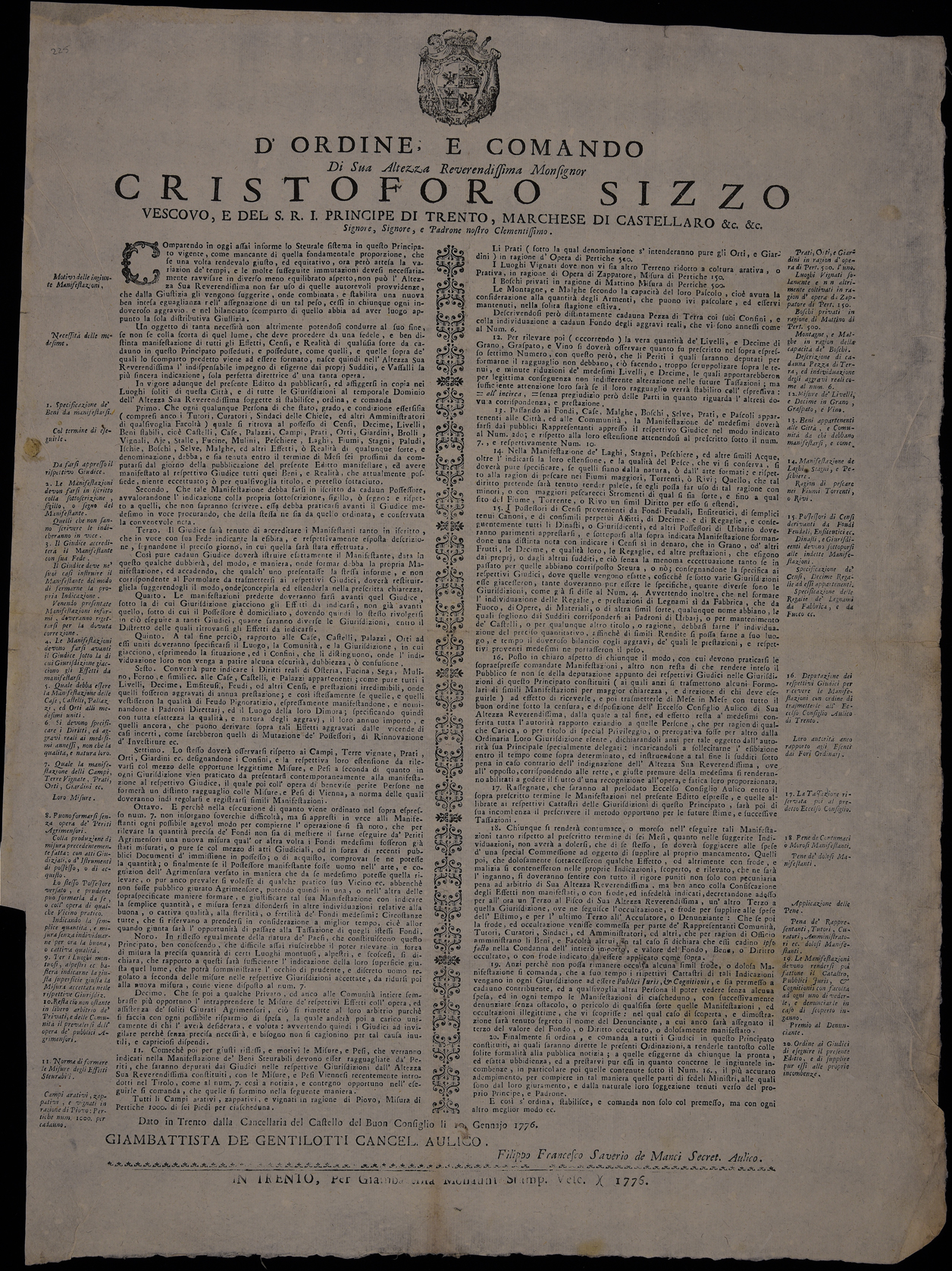 | D'ordine, e comando di sua altezza reverendissima monsignor Cristoforo Sizzo vescovo, e del S.R.I. principe di Trento ... |