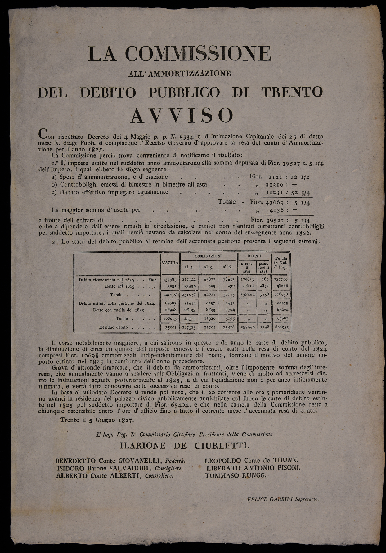 | La commissione all'ammortizzazione del debito pubblico di Trento, avviso |