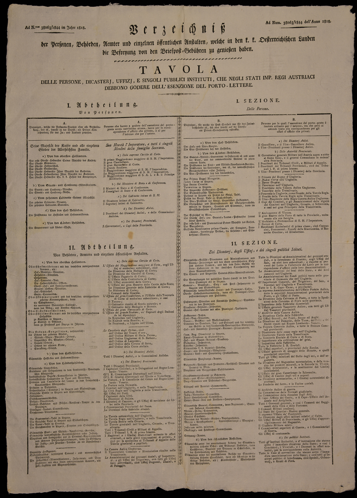 | Tavola delle persone, dicasterj, uffizj, e singoli pubblici instituti, che negli Stati imp. regi austriaci debbono godere dell'esenzione del porto-lettere |
