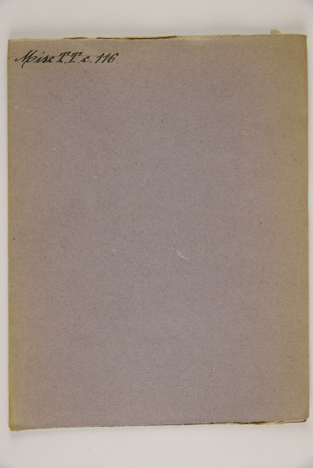 Legatura in cartoncino vinaccia, mm. 220x170, ex libris della Biblioteca al frontespizio, timbri della Biblioteca a c. 1v e a c. 4v, numero d'inventario P/7422 a c. 4v, antica segnatura di collocazione: Misc. TT c 116.