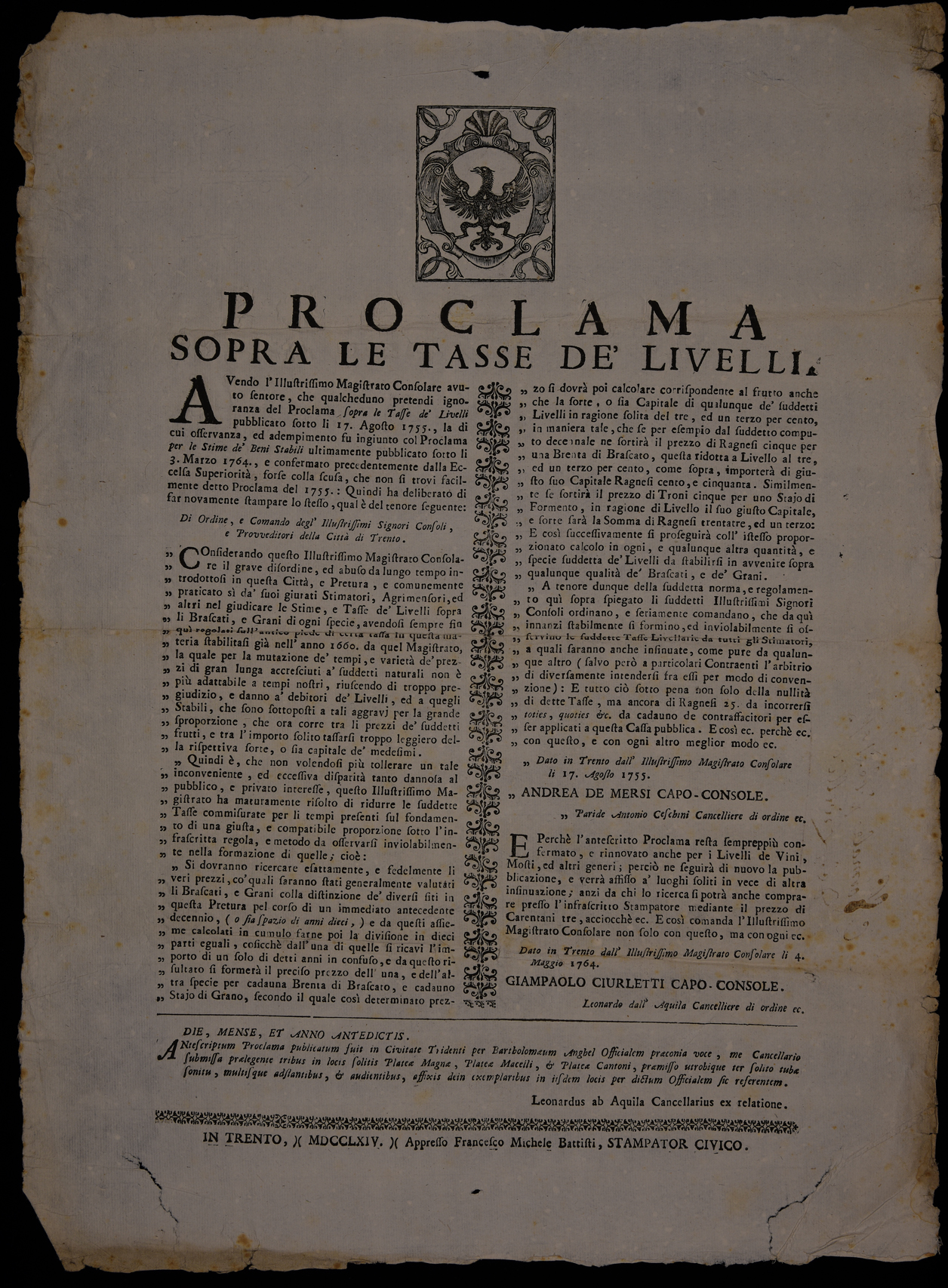 Proclama sopra le tasse de' livelli