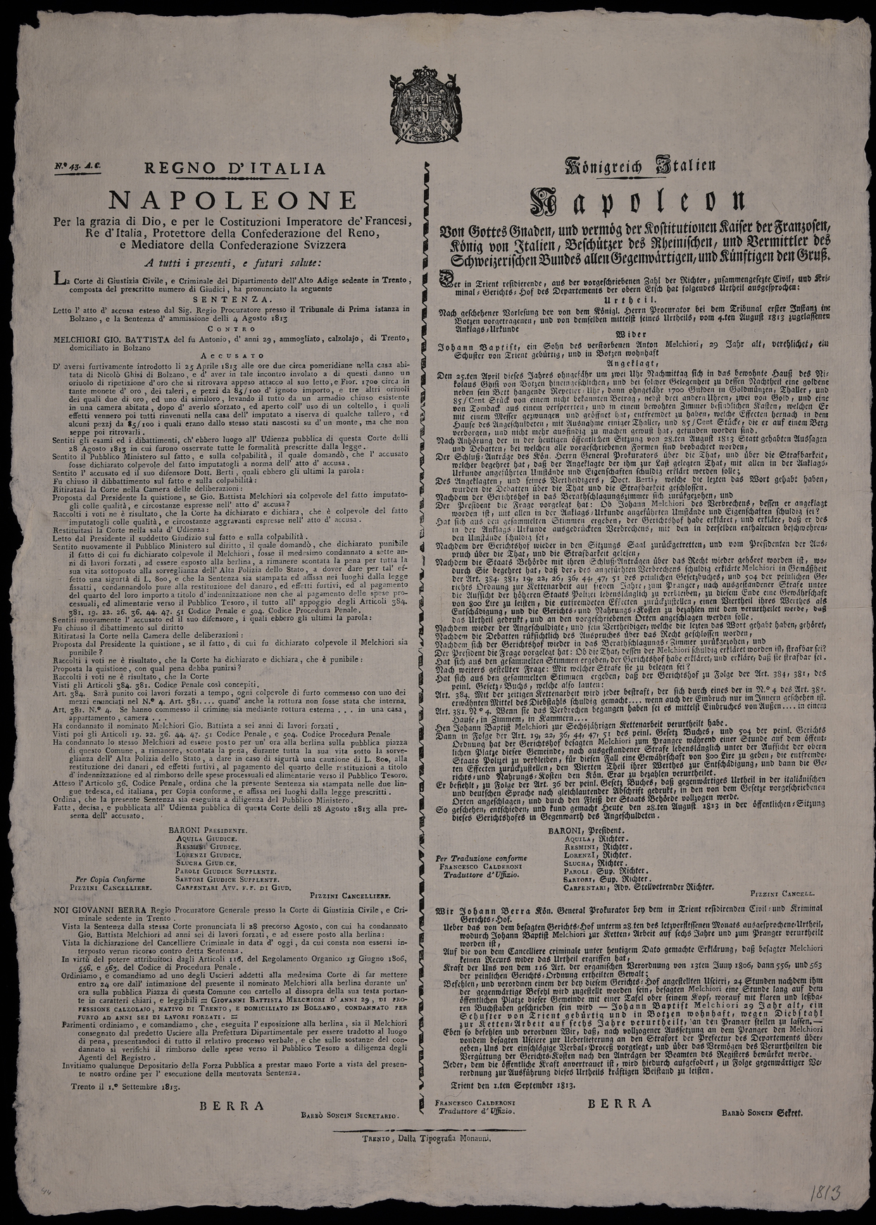 La Corte di giustizia civile, e criminale del Dipartimento dell'Alto Adige sedente in Trento, composta del prescritto numero di giudici, ha pronunciato la seguente sentenza ...