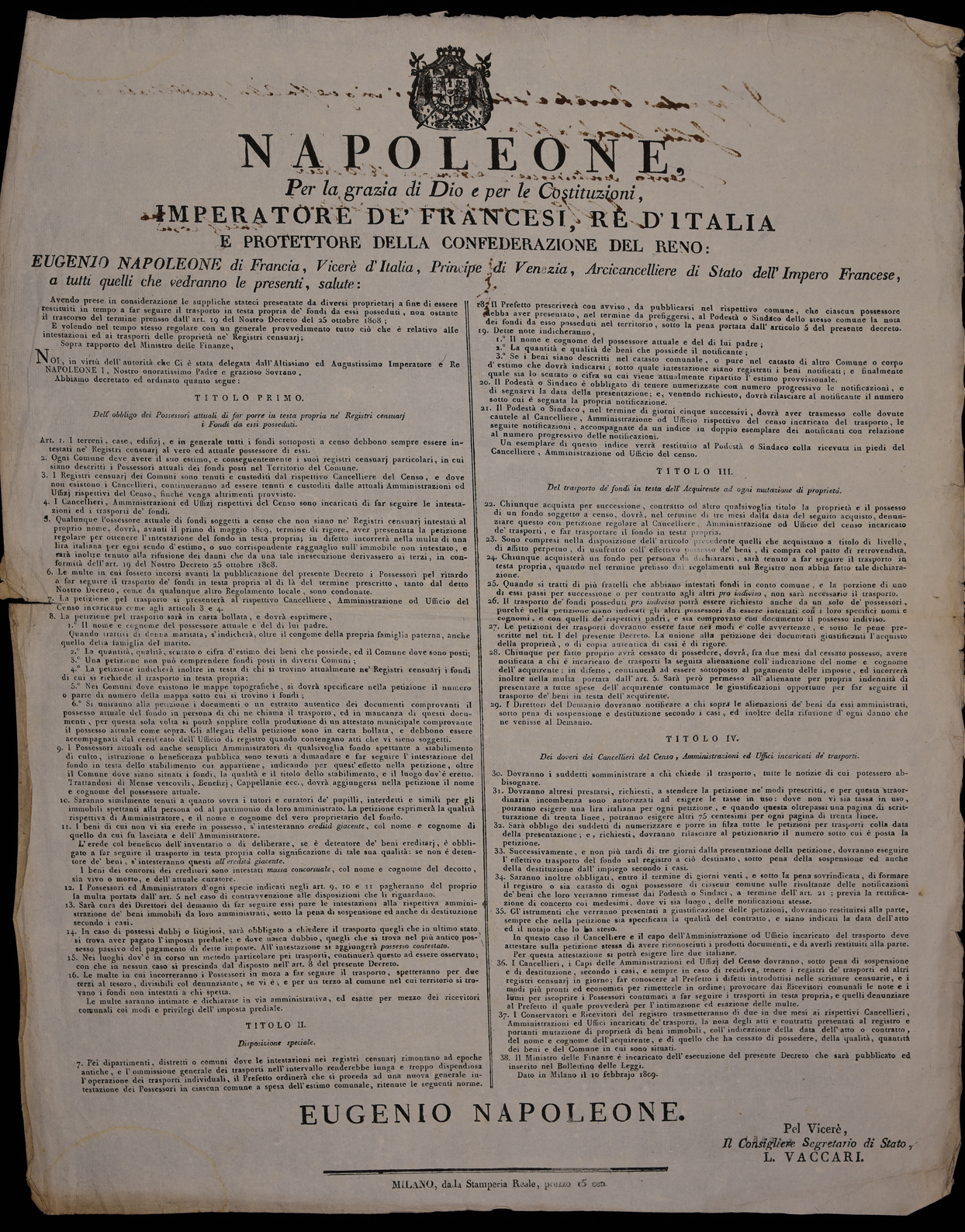 Napoleone, per la grazia di Dio e per le costituzioni, Imperatore de'...