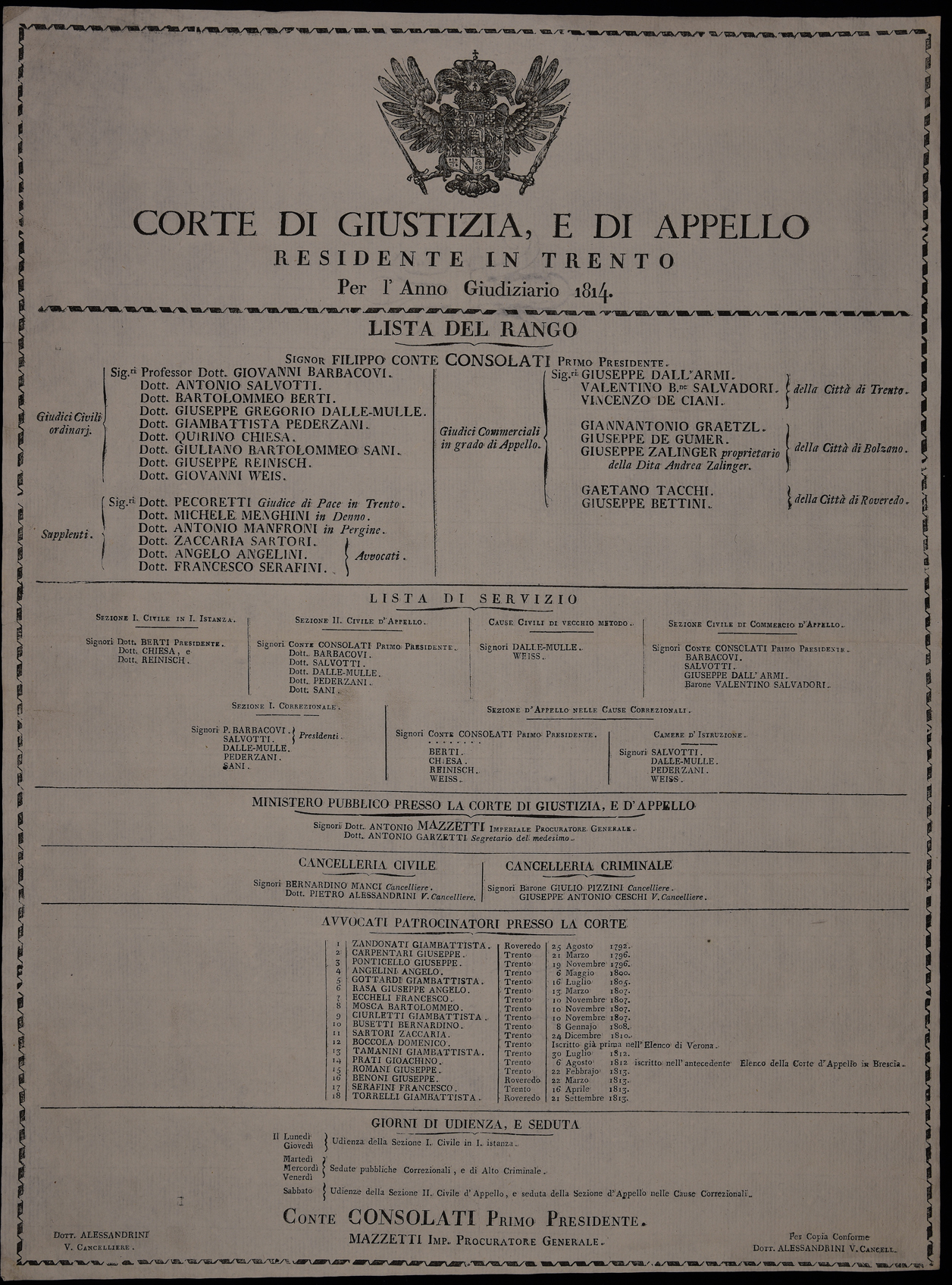 | Corte di giustizia, e di appello residente in Trento per l'anno giudiziario 1814 |