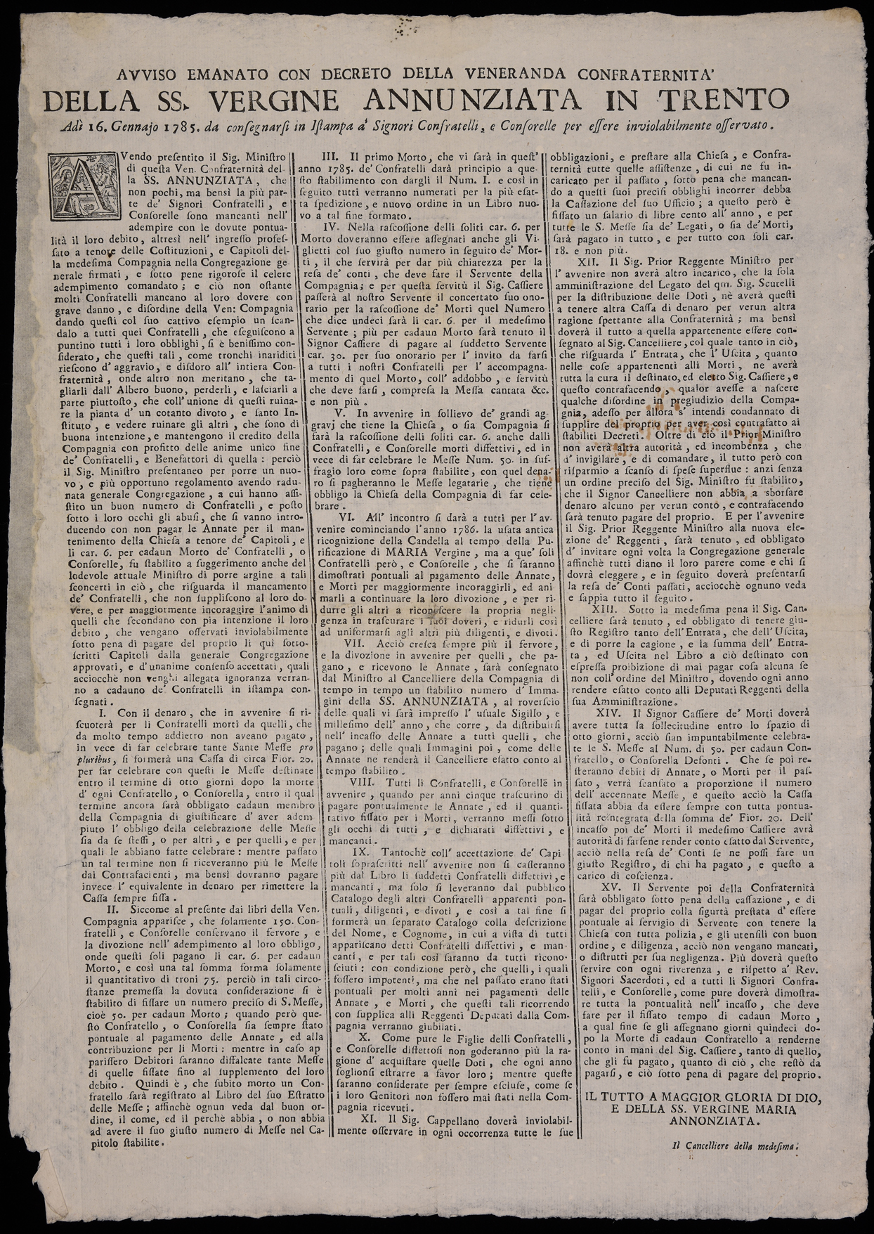 | Avviso emanato con decreto della veneranda confraternità della SS. Vergine Annunziata in Trento ... |