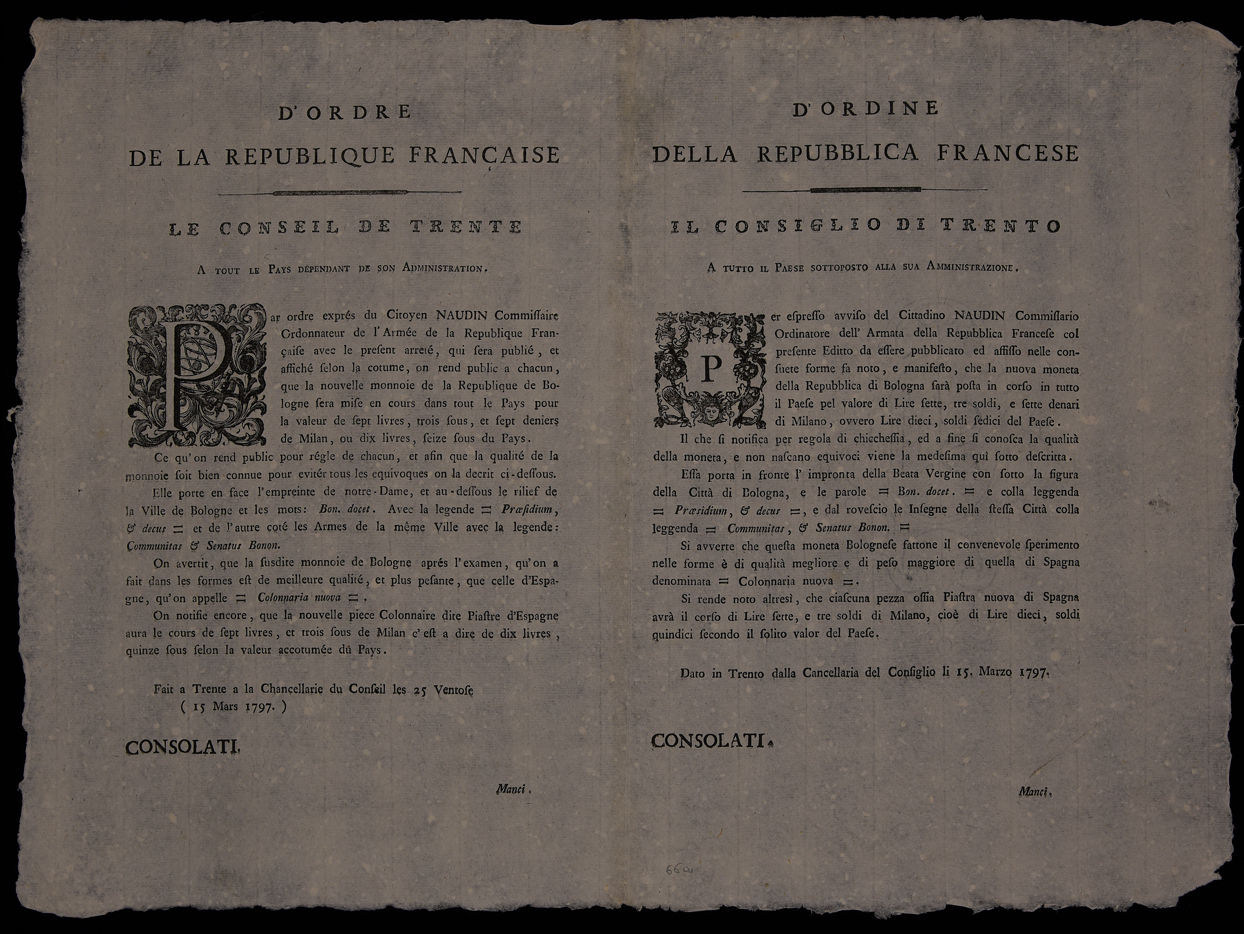 | D'ordine della Repubblica Francese. il Consiglio di Trento a tutto il Paese sottoposto alla sua amministrazione |