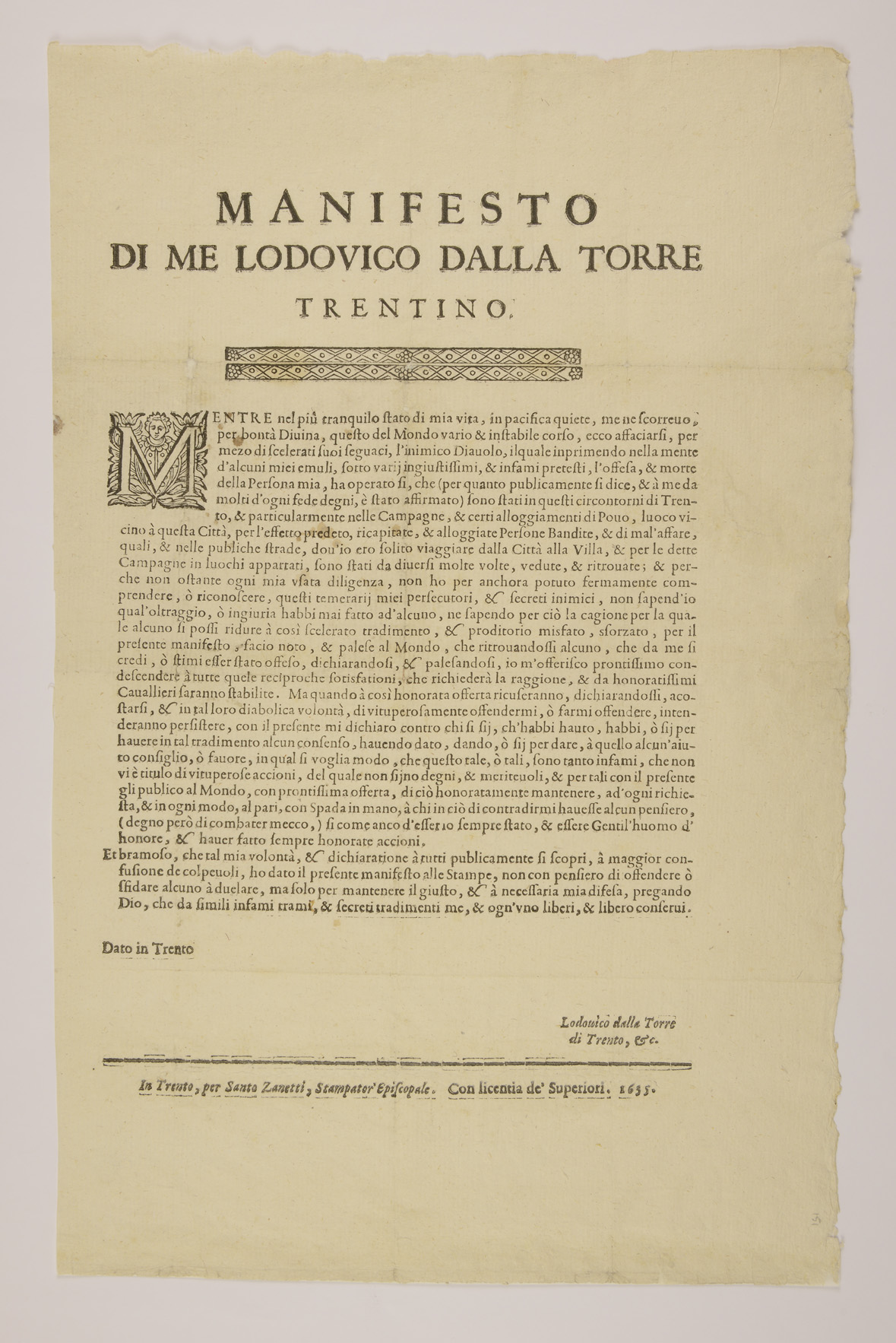 | Manifesto di me Lodovico dalla Torre trentino |