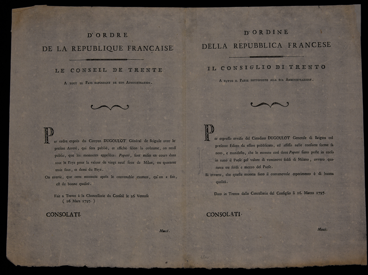 | D'ordine della Repubblica Francese. il Consiglio di Trento a tutto il Paese sottoposto alla sua amministrazione |