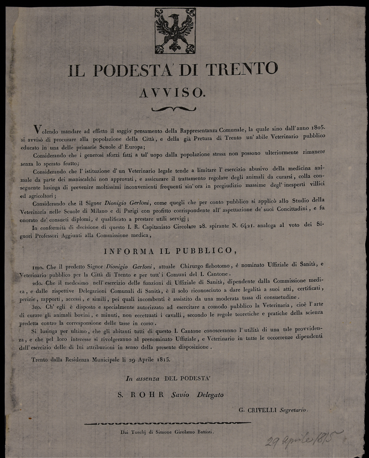 Volendo mandare ad effetto il saggio pensamento della rappresentanza comunale ...