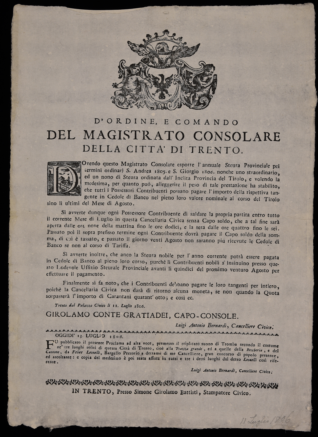 | D'ordine e comando del Magistrato consolare della città di Trento |