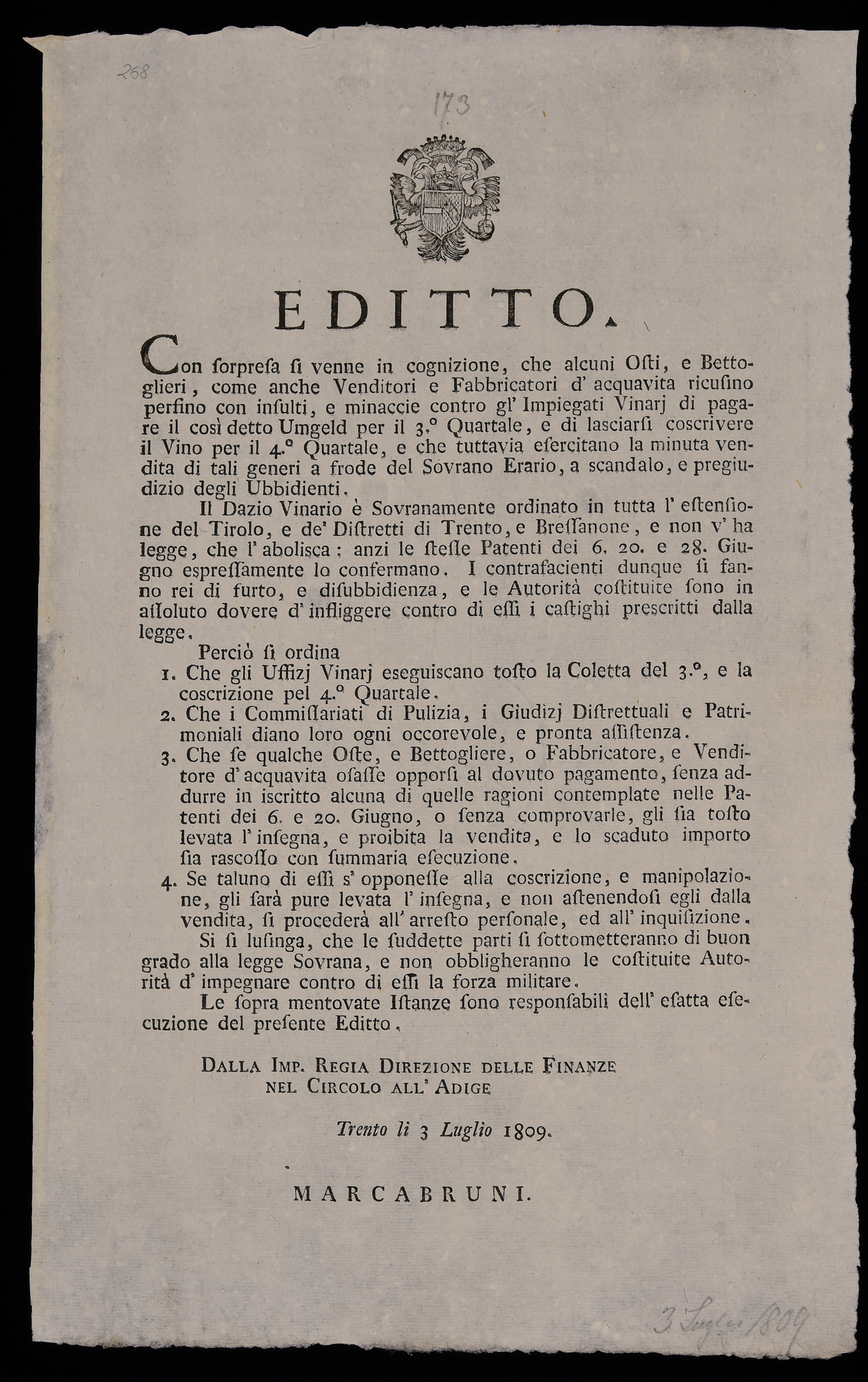 Con sorpresa si venne in cognizione che alcuni osti e bettoglieri, come anche venditori e fabbricatori d'acquavita ...