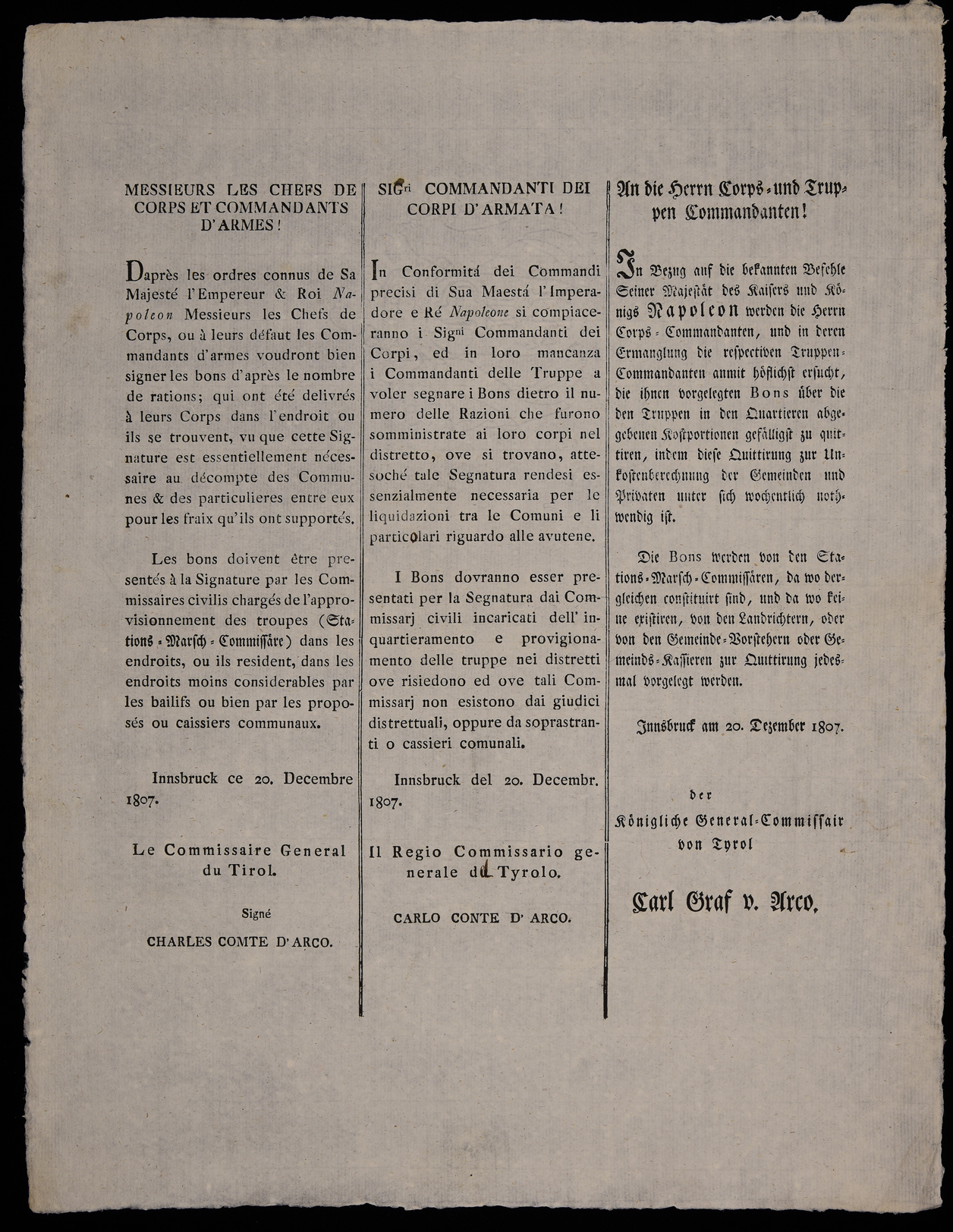 Daprès les ordres connus de sa Majesté l'empereur & roi Napoleon ...