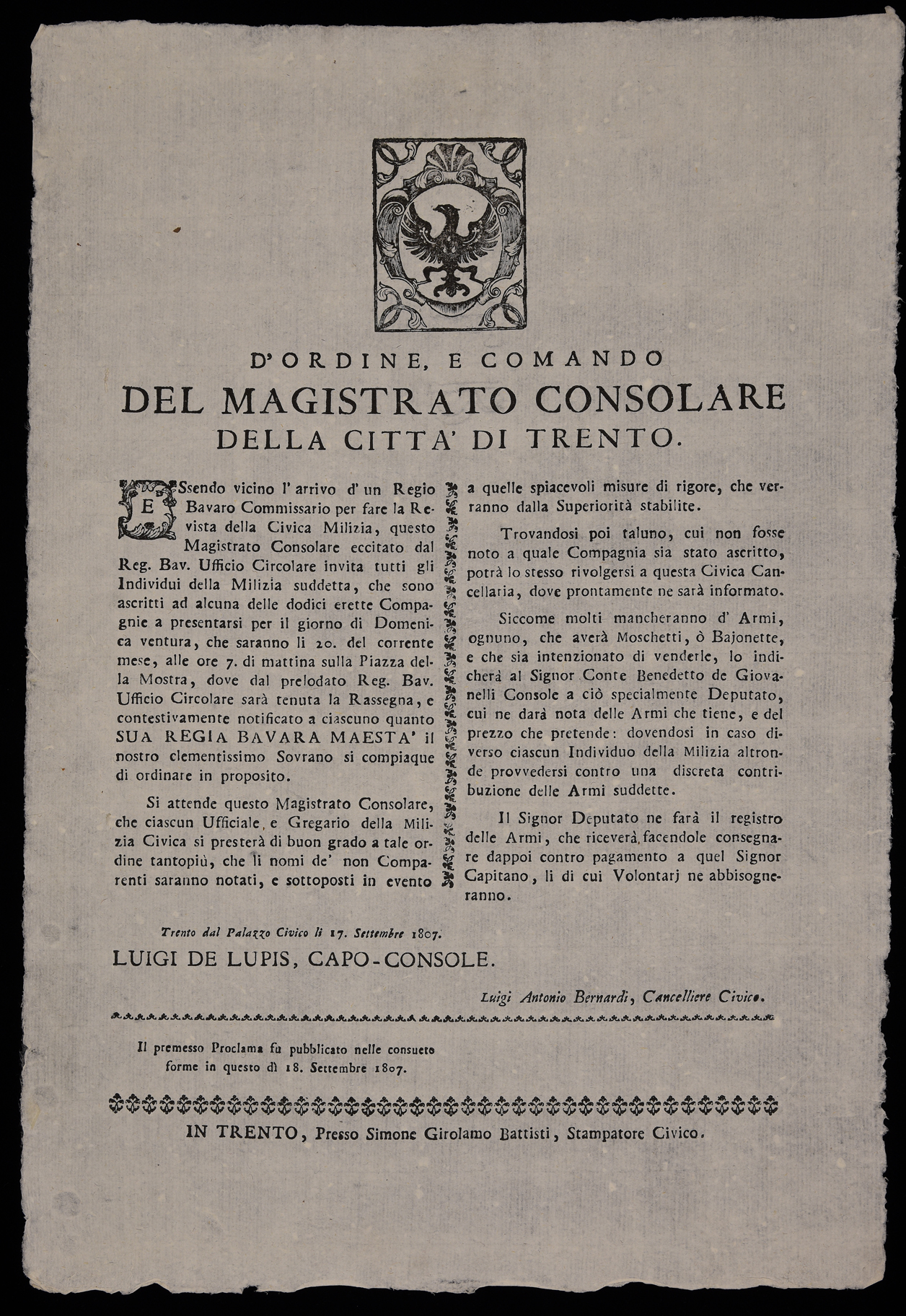 | D'ordine e comando del Magistrato consolare della città di Trento |