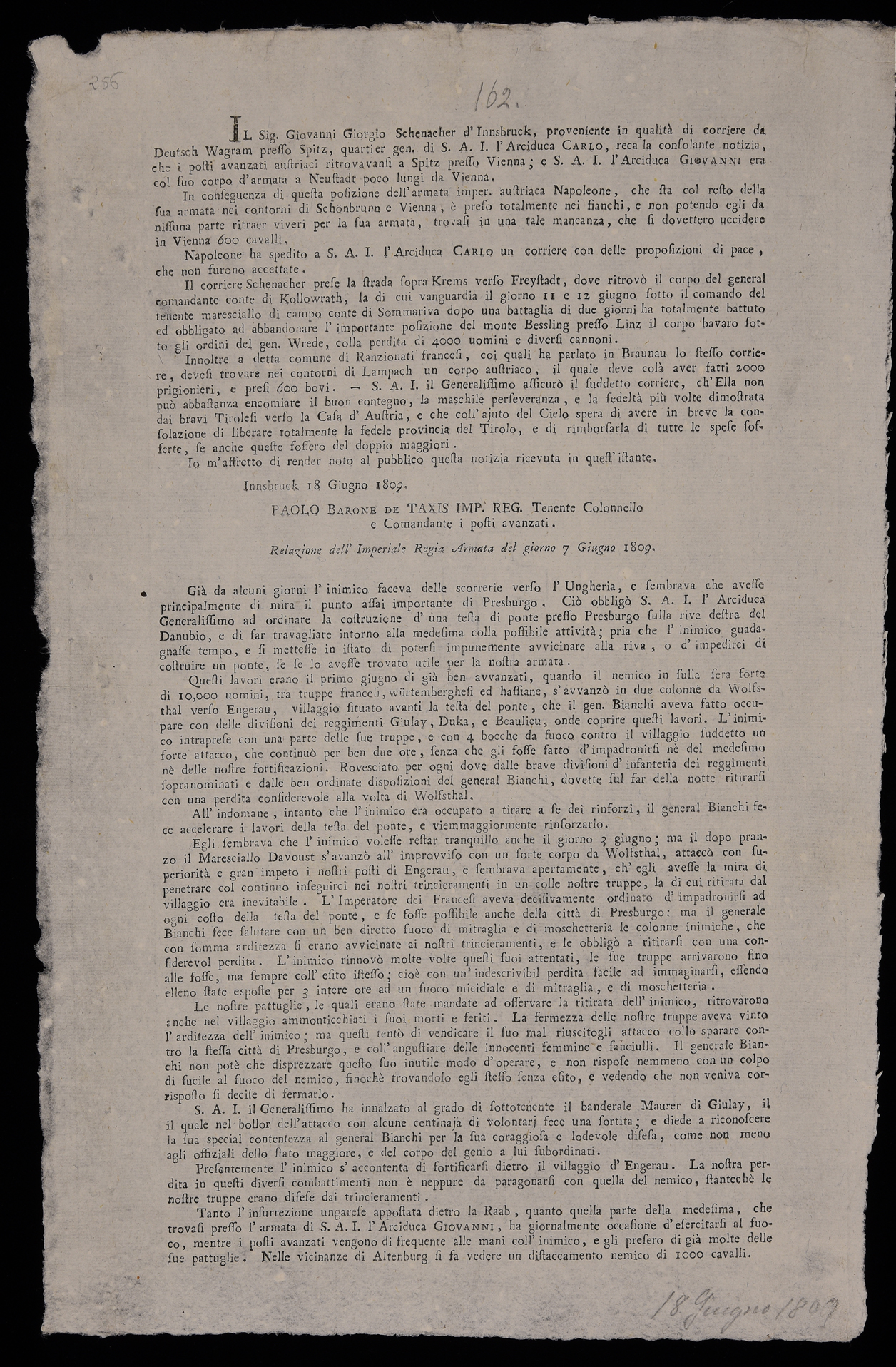 | Il sig. Giovanni Giorgio Shenacher d'Innsbruck, proveniente in qualità di corriere da Deutsch Wagram presso Spitz ... |