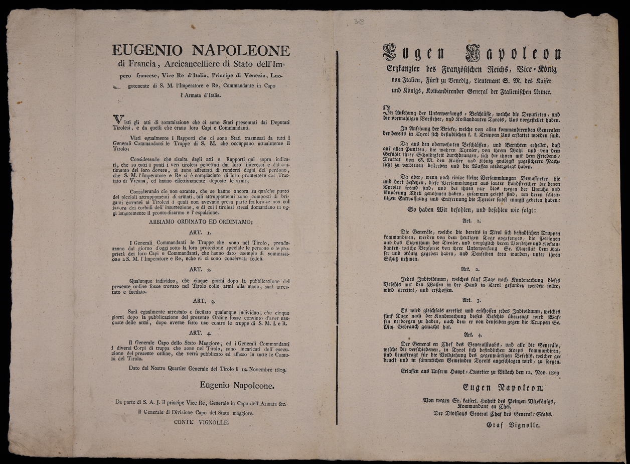 | Eugen Napoleon Erzkanzler des französischen Reichs, Vice-König von Italien, Fürst zu Venedig, Lieutenant S.M. des Kaiser und Königs, Komandirender General der italienischen Armee |