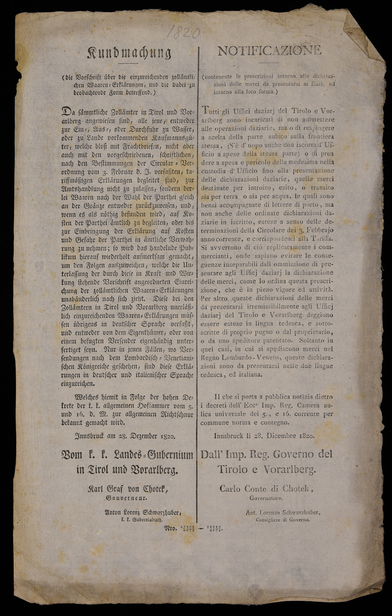 | Kundmachung (die Vorschrift über die einzureichenden zollämtlichen Waaren-Erklärungen und die dabei zu beobachtenden Form betreffend) |