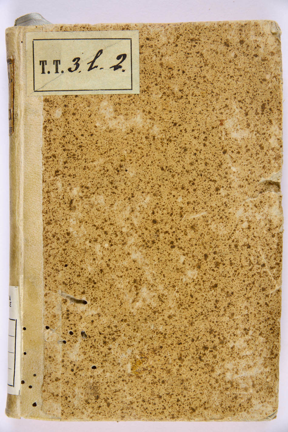 Ex libris della famiglia Schreck e della Biblioteca comunale sul verso del piatto anteriore, timbri della Biblioteca al verso della c. di guardia anteriore, al frontespizio e a c. Q6v (inchiostro nero, tipo B). Legatura in mezza pergamena e cartoni in carta sbruffata, tassello in marocchino sul dorso con autore e titolo incisi, tagli in rosso, 1 c. di guardia ant. e 2 post., mm. 145x100x15. Antiche segnature di collocazione: TT 3 l 2, TT k 74 (Biblioteca comunale), provenienza famiglia Schreck. Numero d’inventario della Biblioteca comunale di Trento: x/161 a c. Q6r.